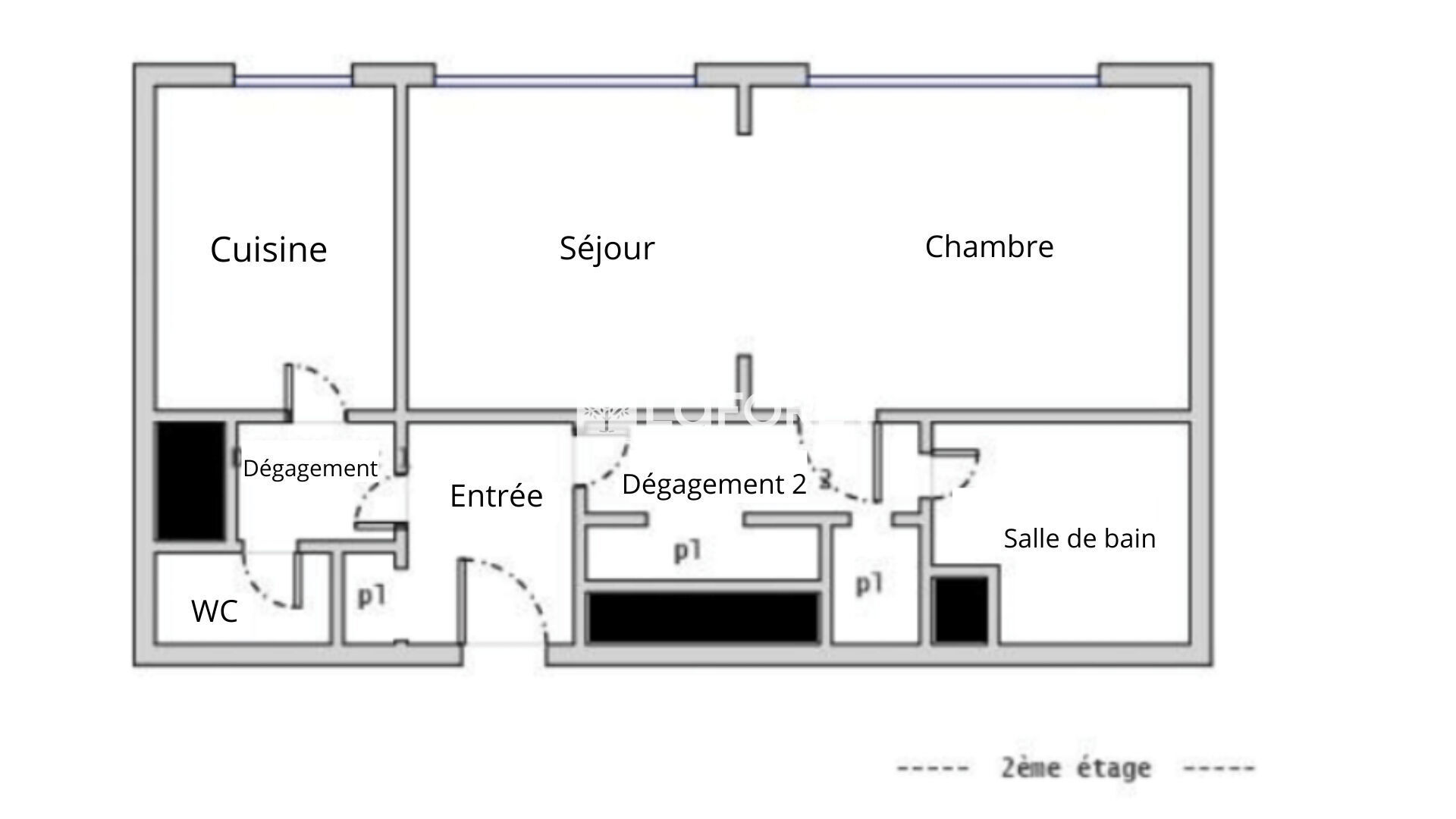 L'agencement actuel comprend une entrée, un séjour, une chambre, une cuisine indépendante (possibilité d'ouverture sur le séjour), une salle de bains et des WC séparés.