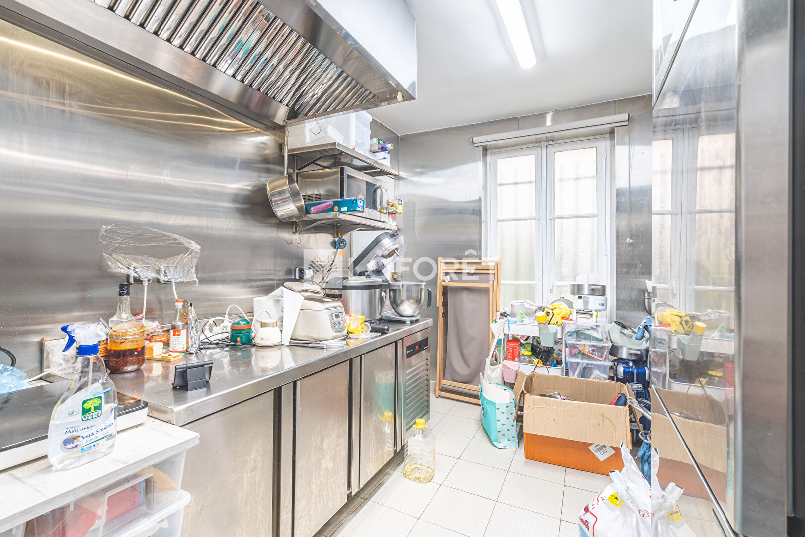 À l'arrière, vous trouverez un espace de préparation disposant d'un accès direct aux parties communes de la copropriété, facilitant l'organisation logistique de l'activité.