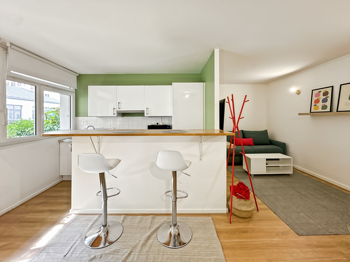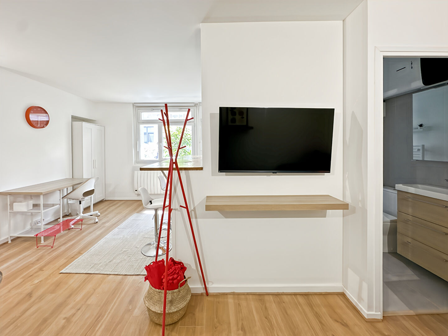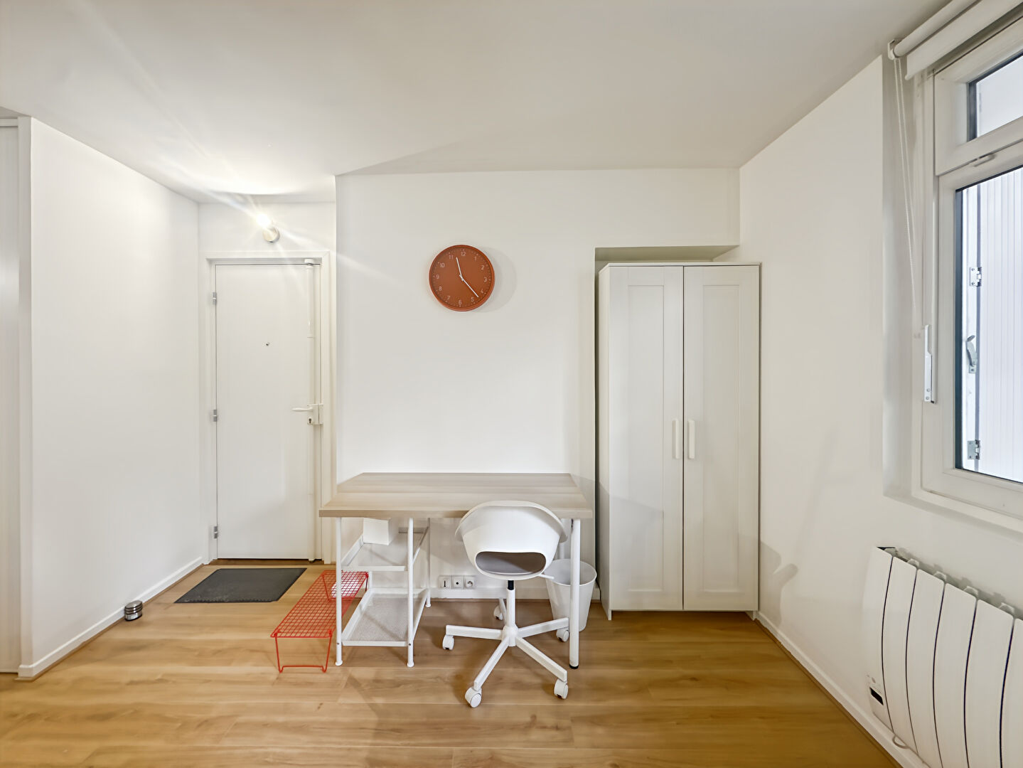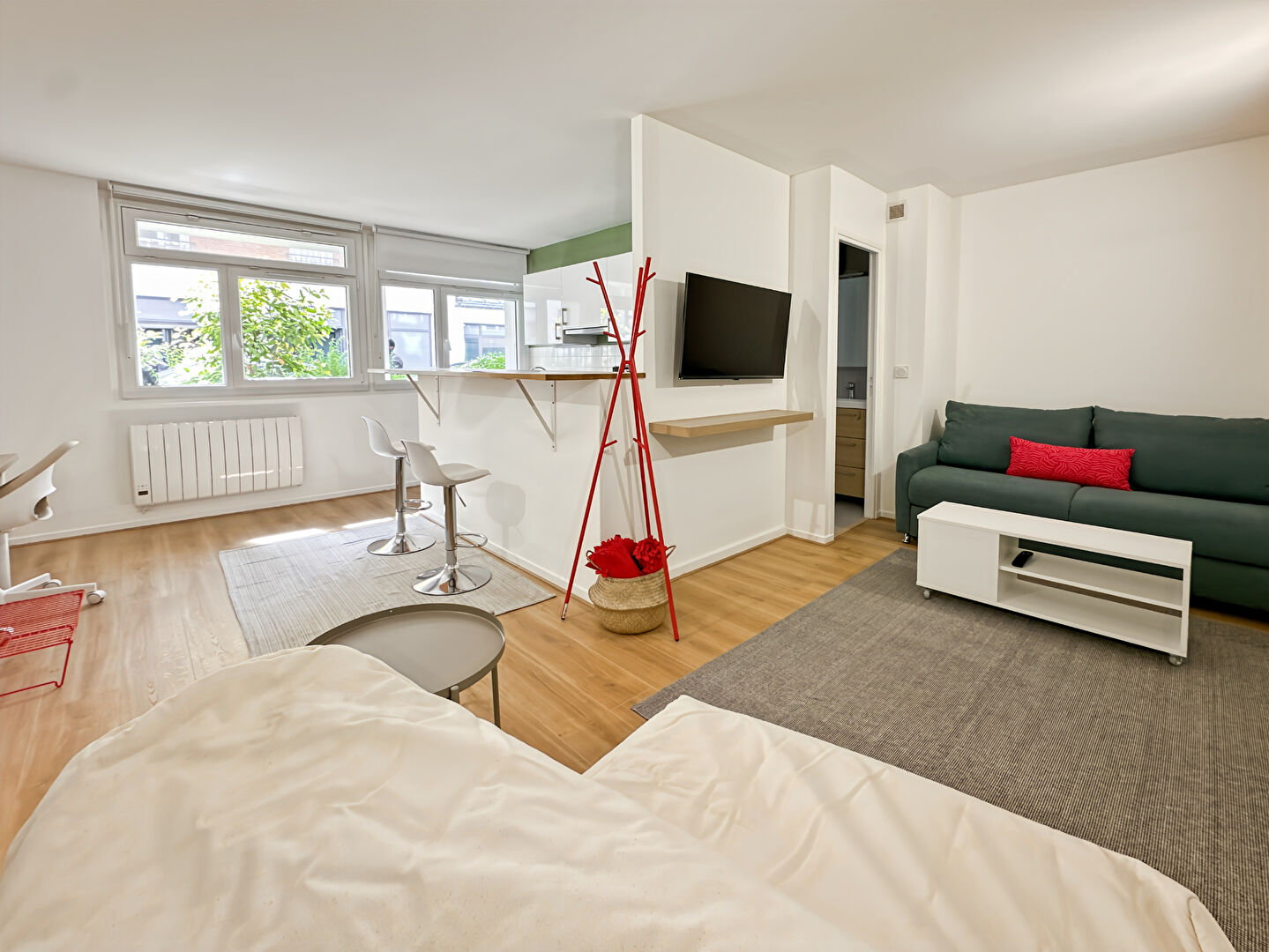 Beau studio situé en RDC, refait à neuf de 28,95m2 composé d'une pièce de vie spacieuse avec cuisine ouverte équipée et amanagée , d'un coin bureau, de grands placards de rangement, d'une salle d'eau avec WC.