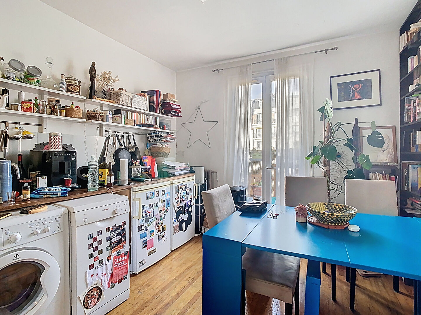 Il se compose d'une entrée, une salle d'eau avec WC, un séjour (sur cour), une salle à manger/cuisine aménagée (sur rue) ainsi que d'une chambre avec balcon (sur rue).
