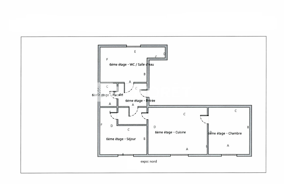 Il se compose : d'une entrée, un cuisine/séjour, de deux chambres, d'un placard de rangement ainsi qu'une salle d'eau avec WC.