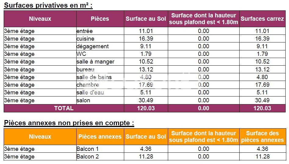120 m² • 4 pièces • 3 chambres