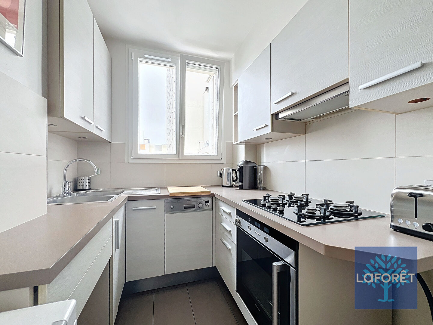 Un appartement au calme, donnant côté jardin, situé au 7ème étage avec ascenseur , il se compose d'un séjour, une cuisine équipée et aménagée, une chambre avec dressing, et une salle de bains avec W.C.