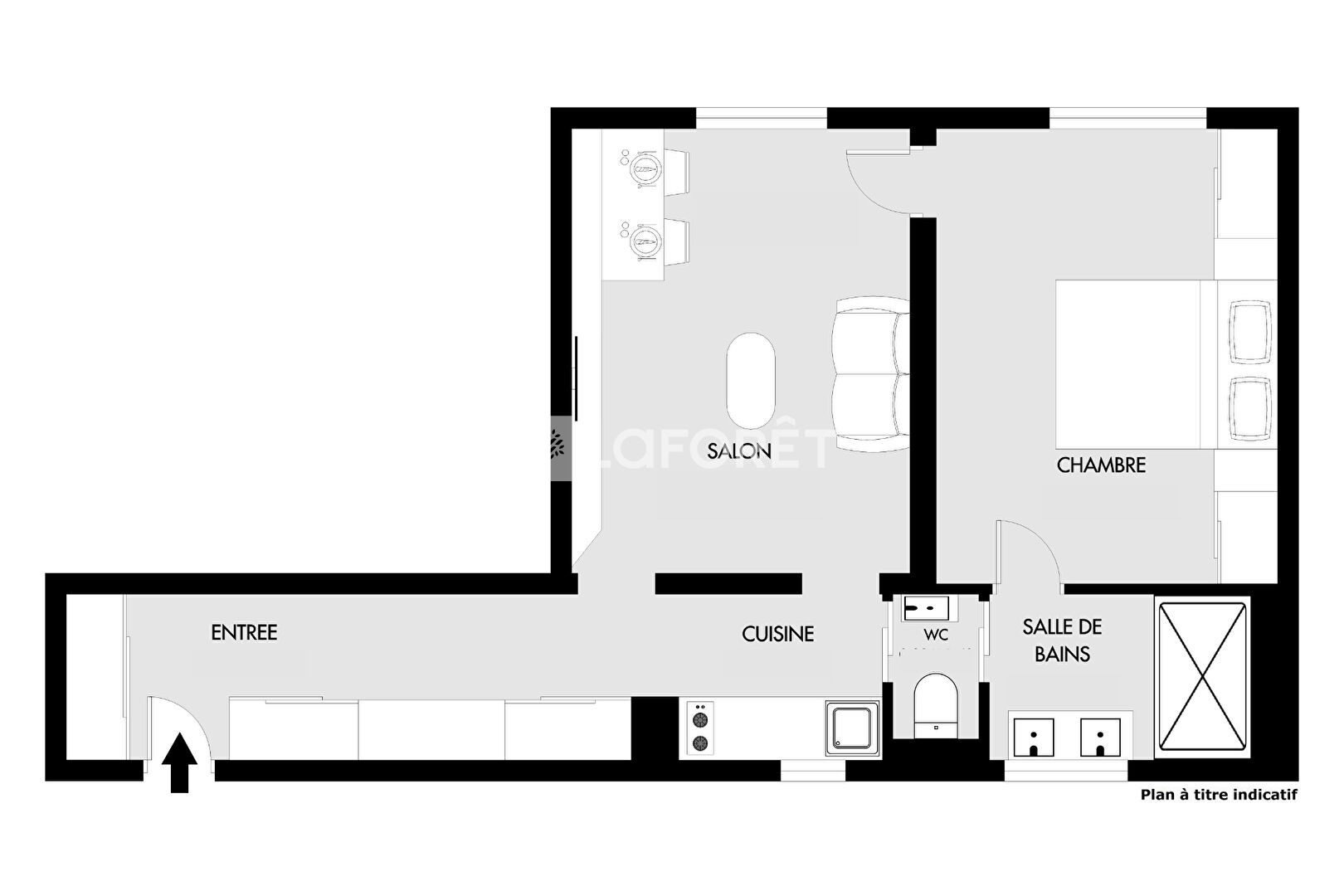 42 m² • 2 pièces • 1 chambre