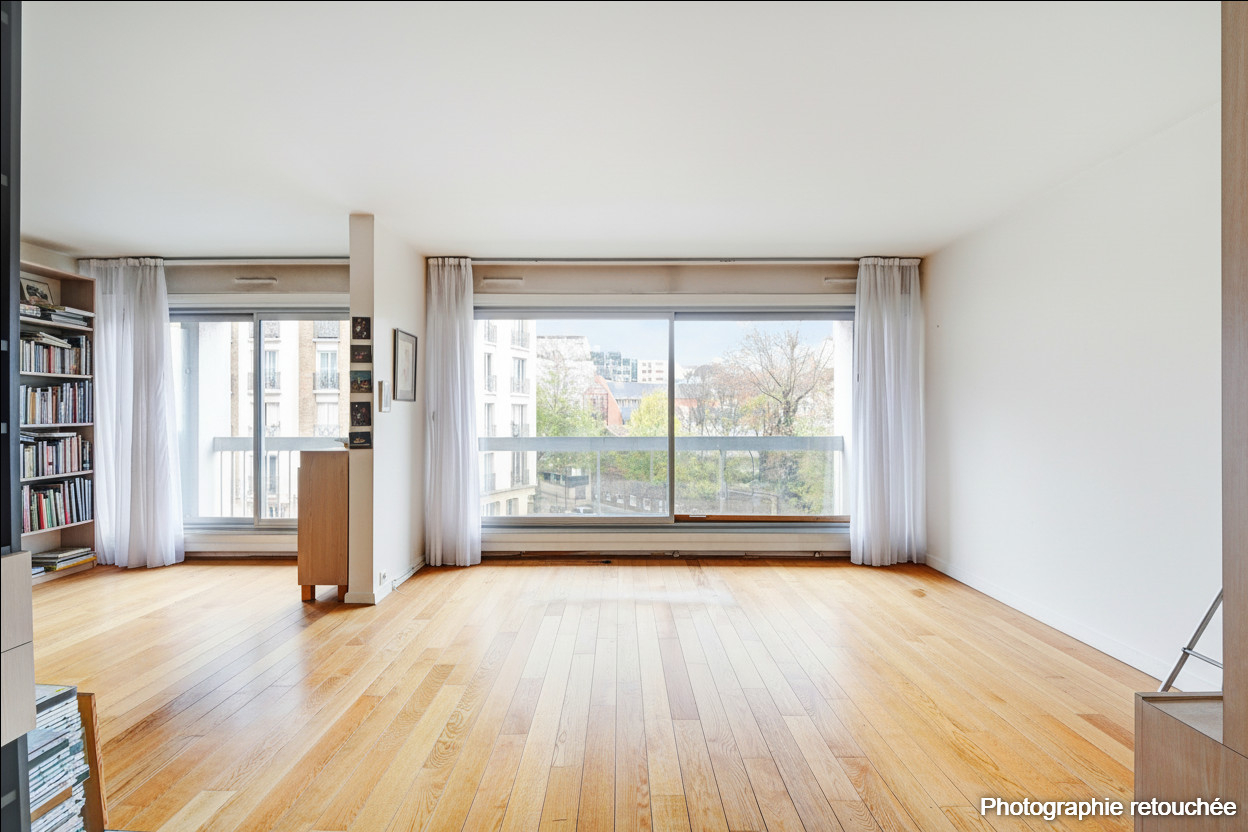 Double séjour lumineux ouvrant sur un balcon ensoleillé