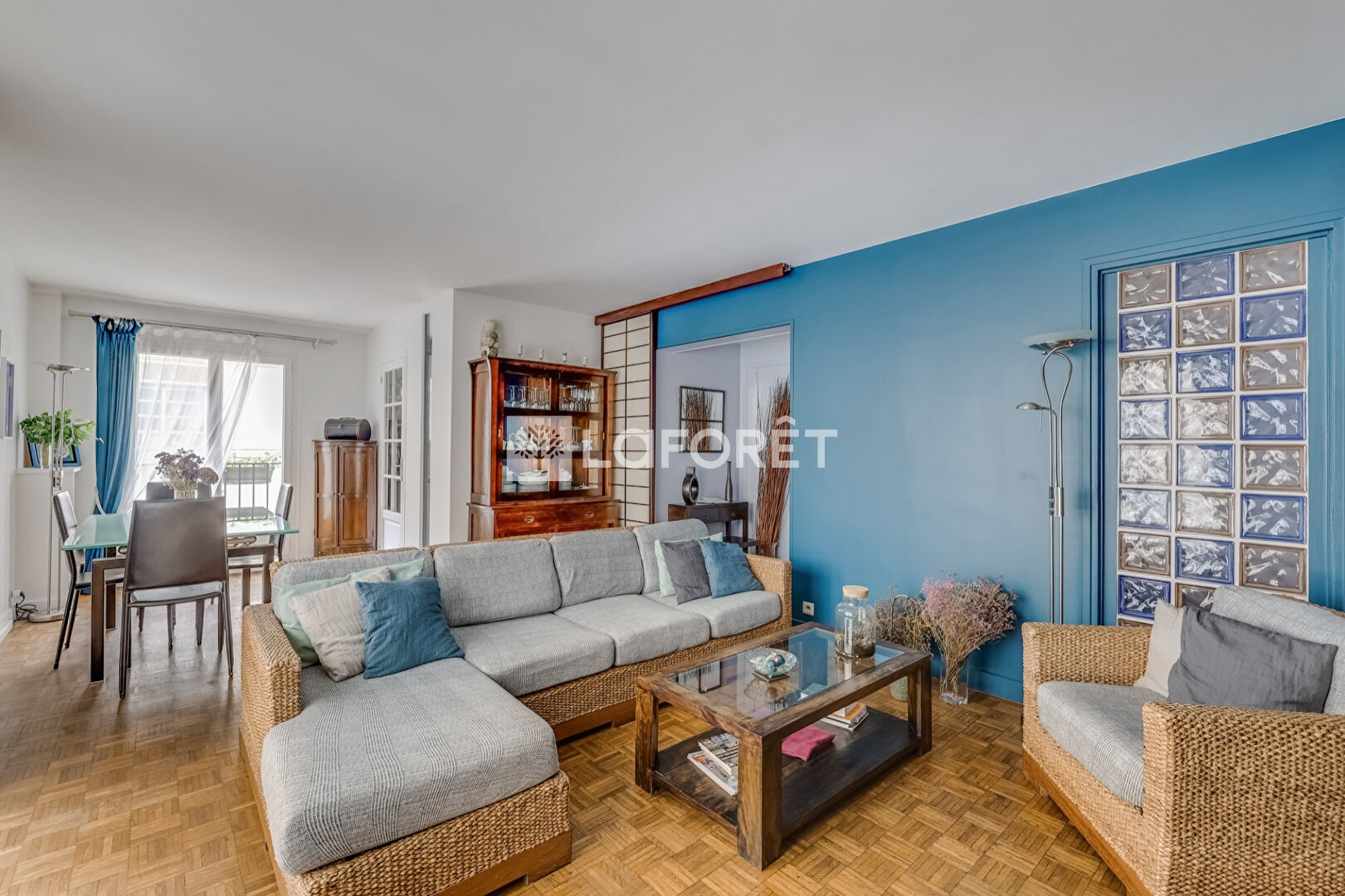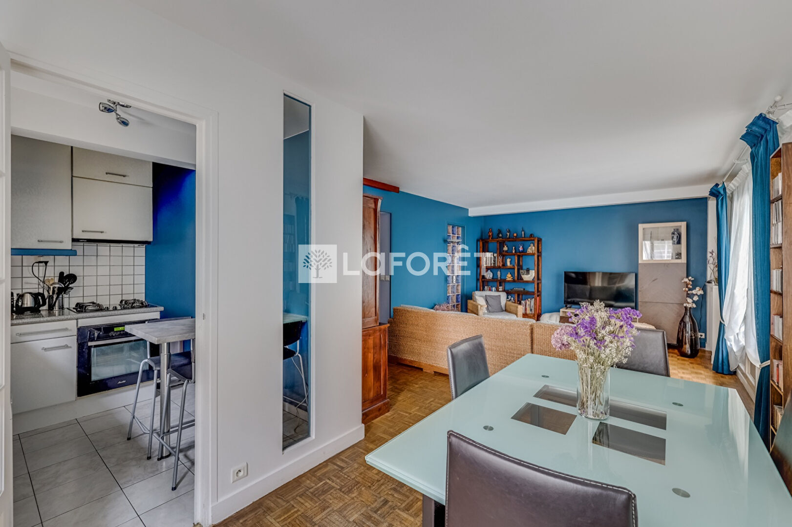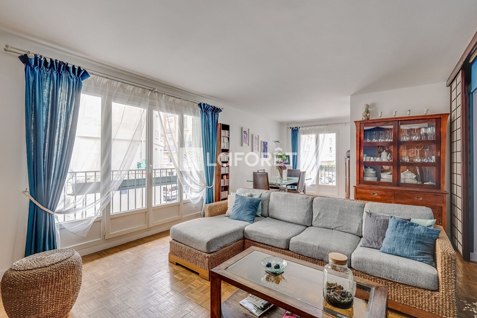 Il se compose d'un double séjour avec cuisine indépendante (ouvrable sur le séjour), de trois chambres au calme, de deux dressings, d'une salle d'eau ainsi qu'un WC indépendant.