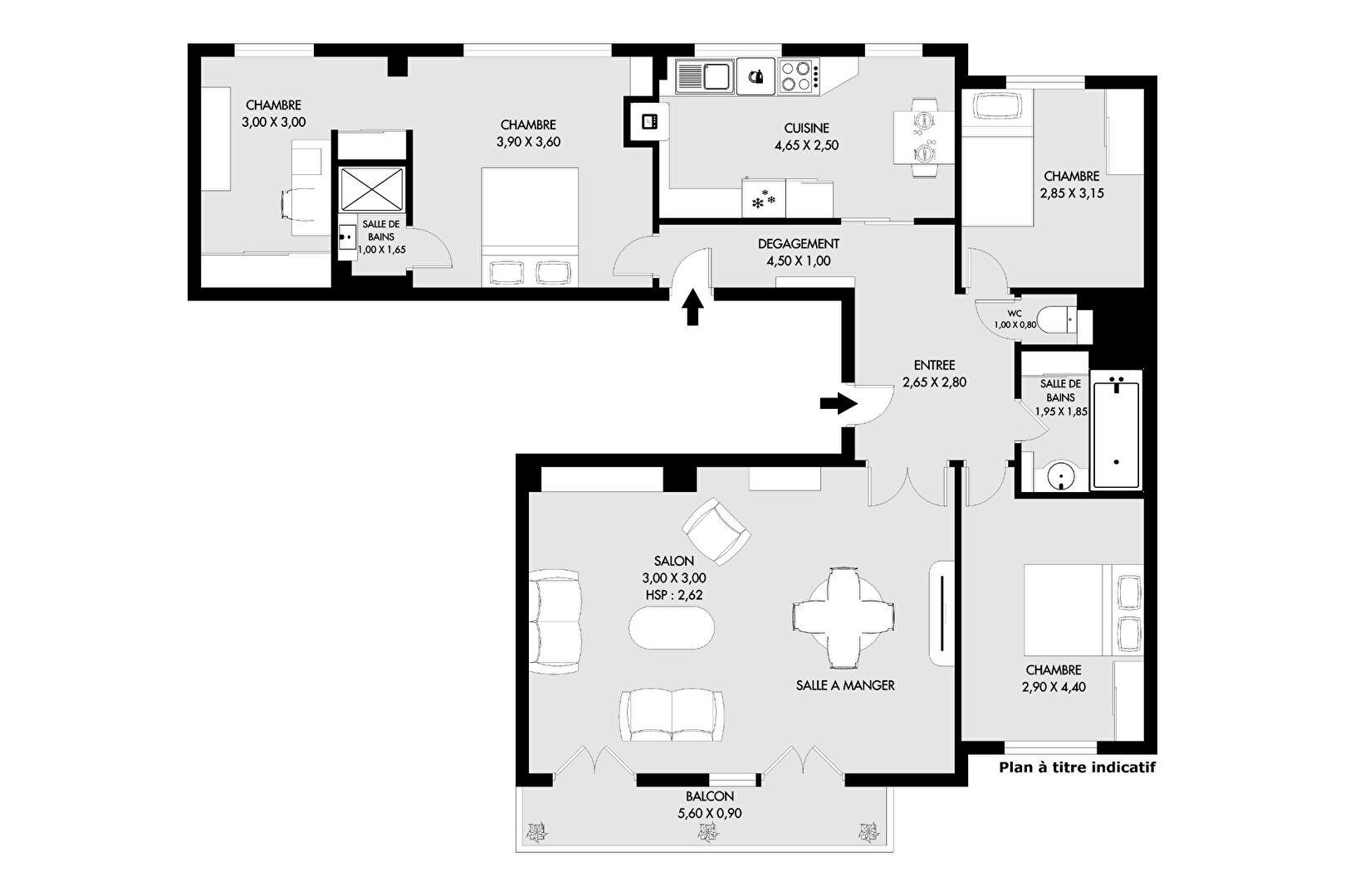 Il se compose d'un double séjour spacieux ouvrant sur un balcon filant. La cuisine séparée, pouvant être ouverte, offre un beau potentiel d'aménagement.