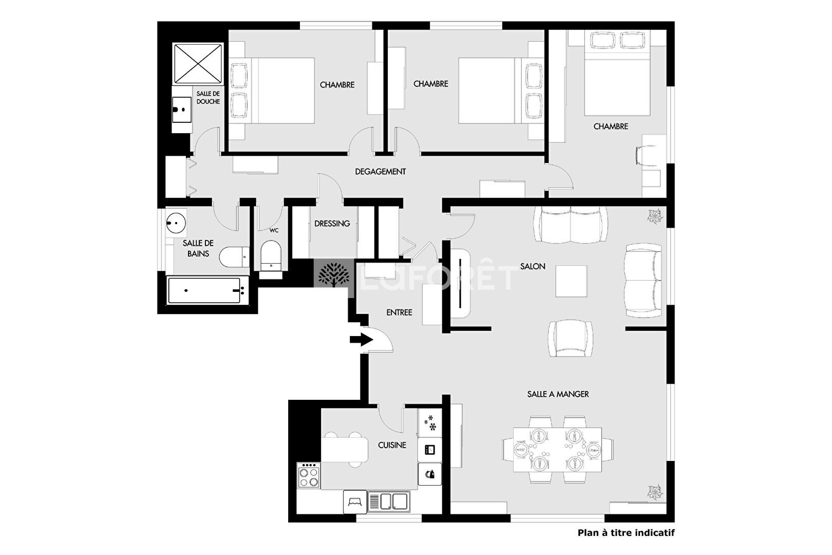 Il se compose d'un double séjour baigné de lumière, de trois chambres au calme, d'une cuisine séparée, de WC indépendants, d'un dressing, d'une salle de bains ainsi que d'une salle d'eau.