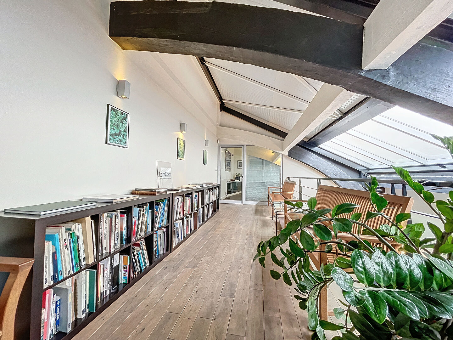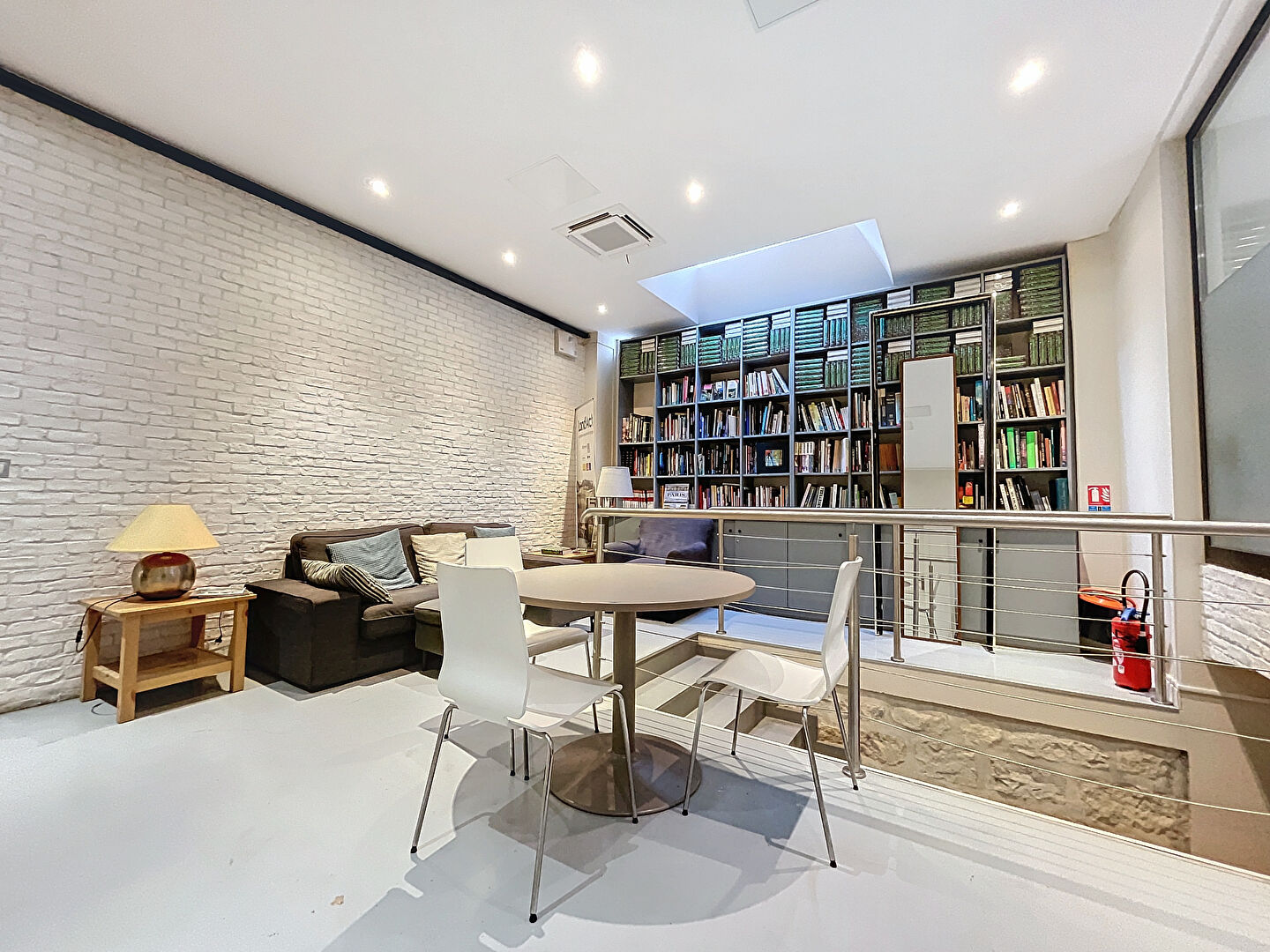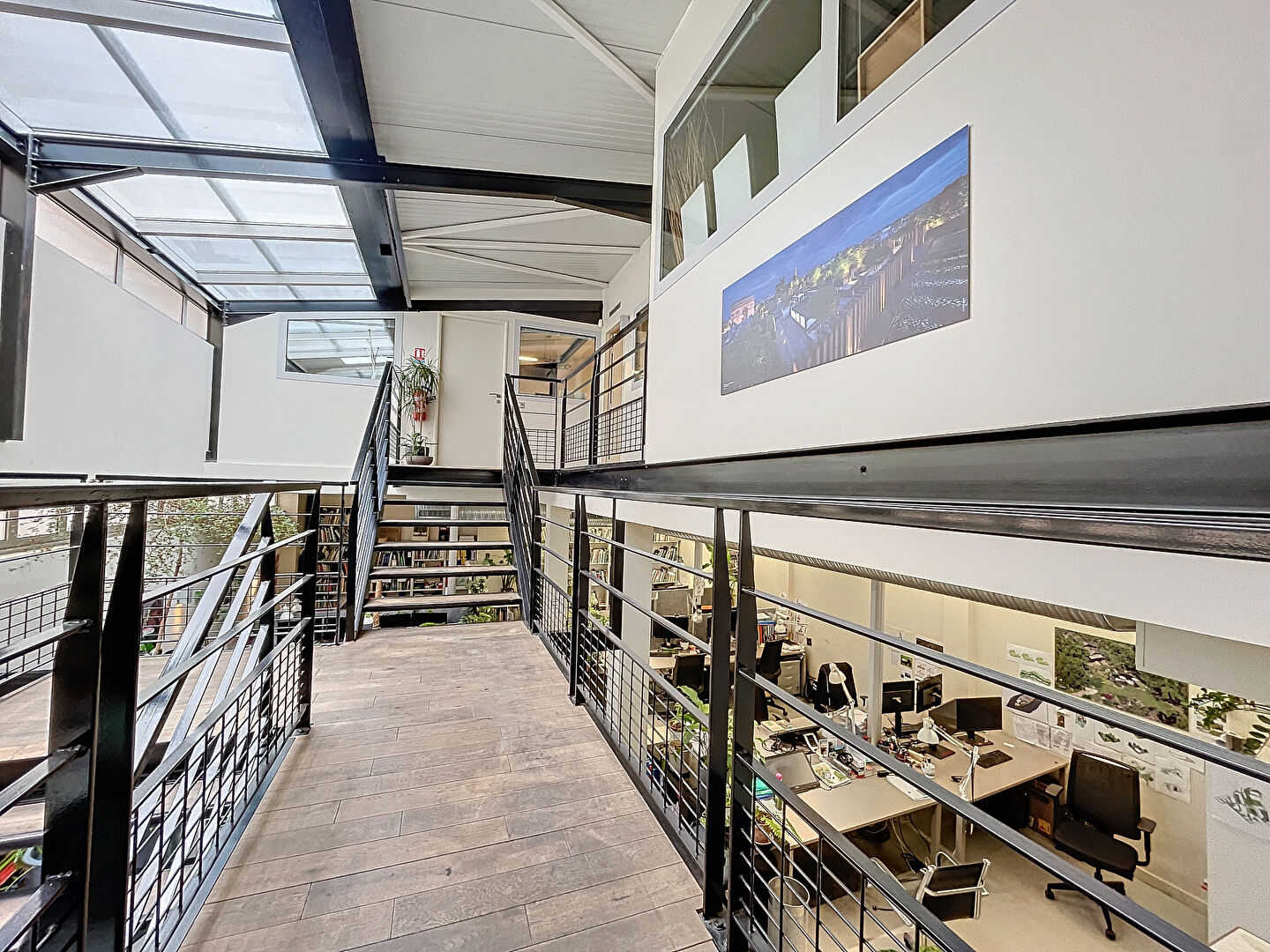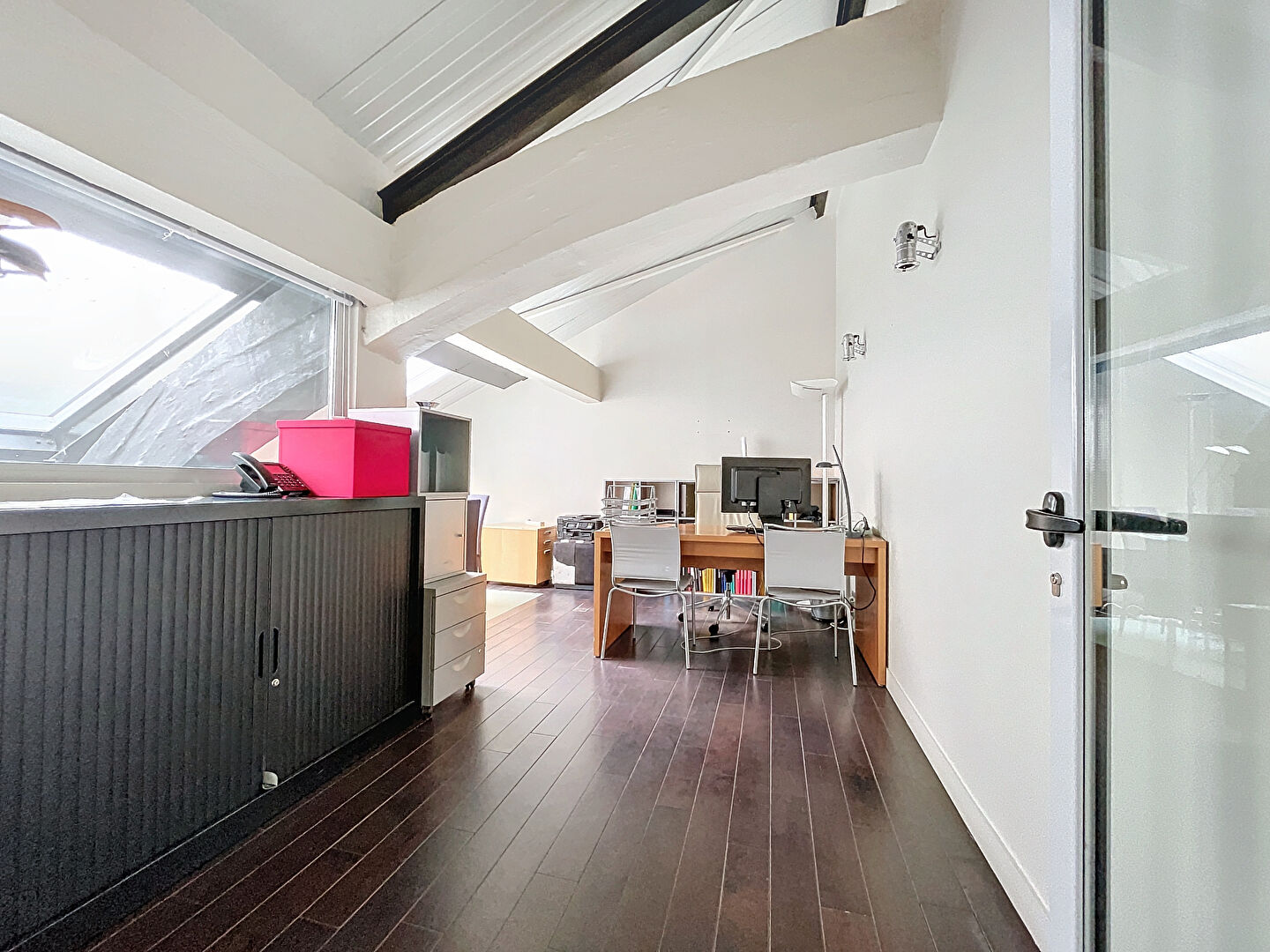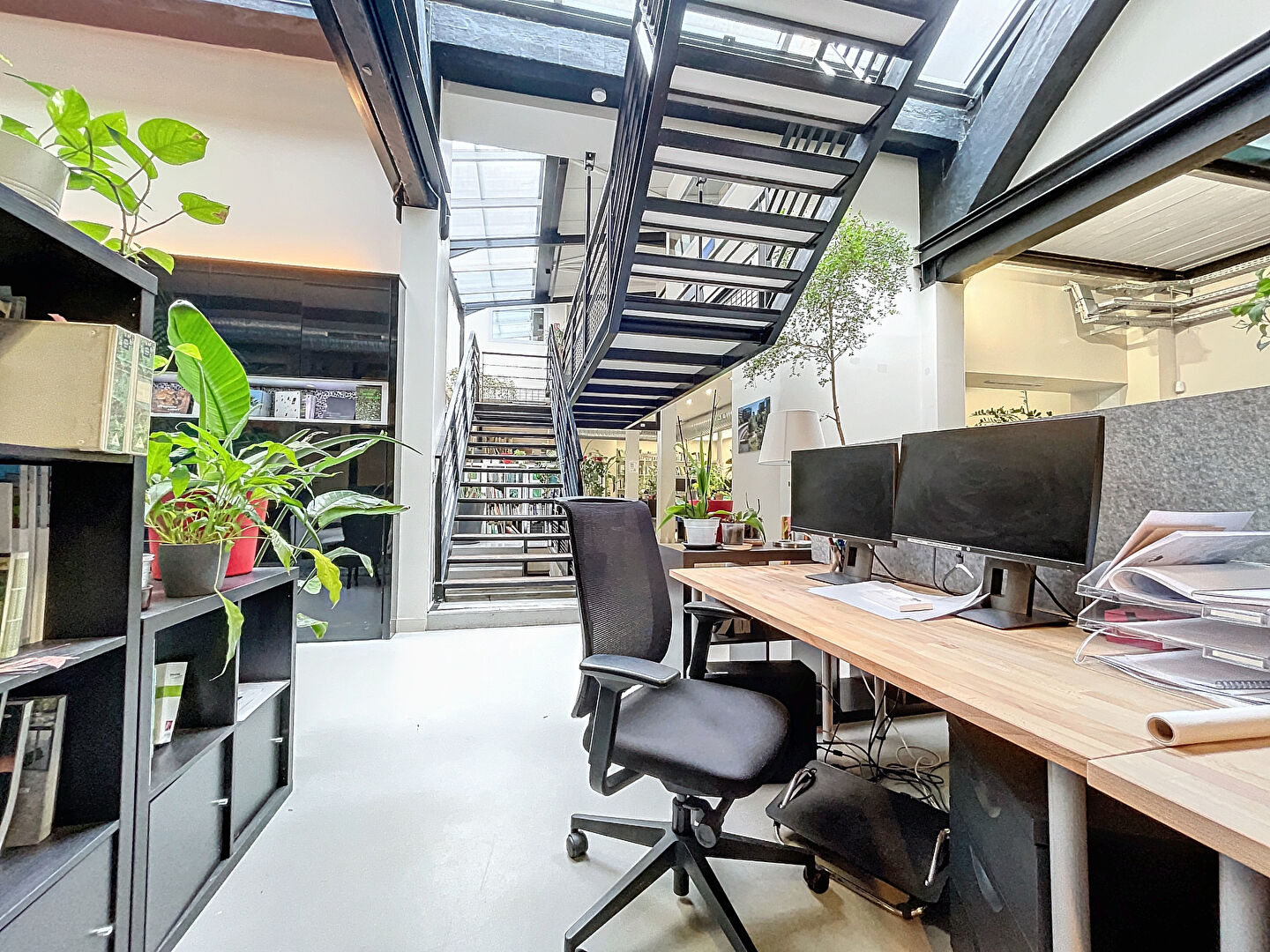 Sur 2 niveaux, ce local de bureaux est composé: d'un espace d'accueil, de quatre open space, de 7 bureaux, d'une cuisine donnant sur cour intérieure, d'un très grand espace pouvant faire office d'espace supplémentaire de bureaux ou réunion, d'un studio indépendant, d'une cave en sous sol accessible via le local. 8 places de parking en sus pour un montant de 9600 € annuel.