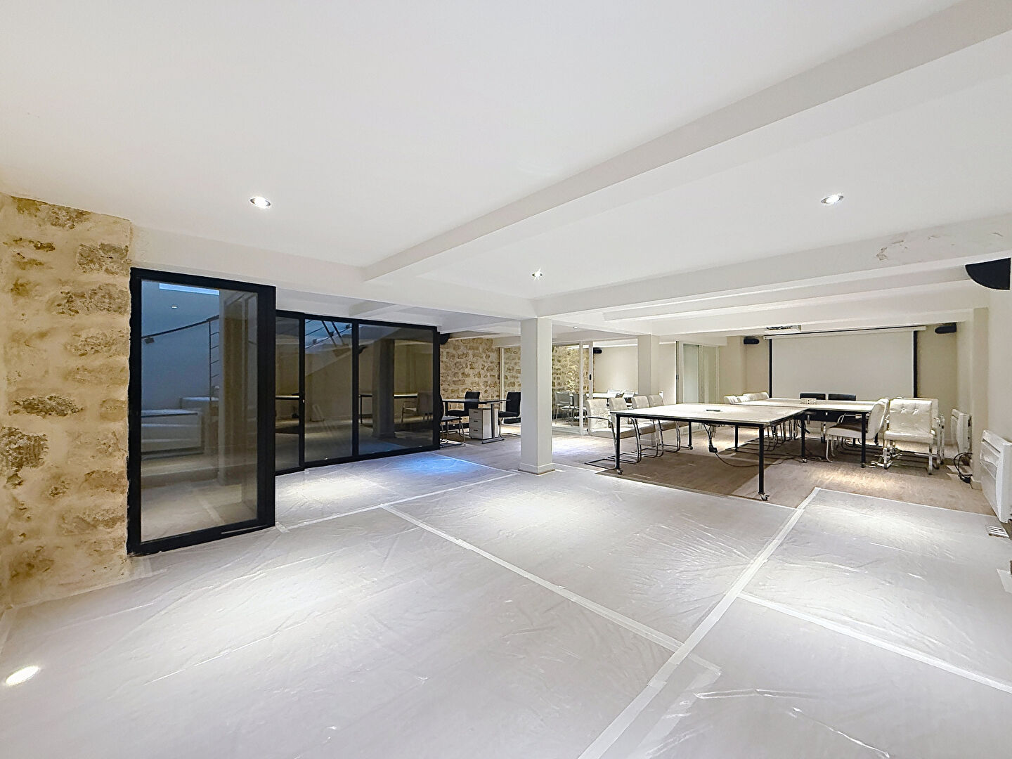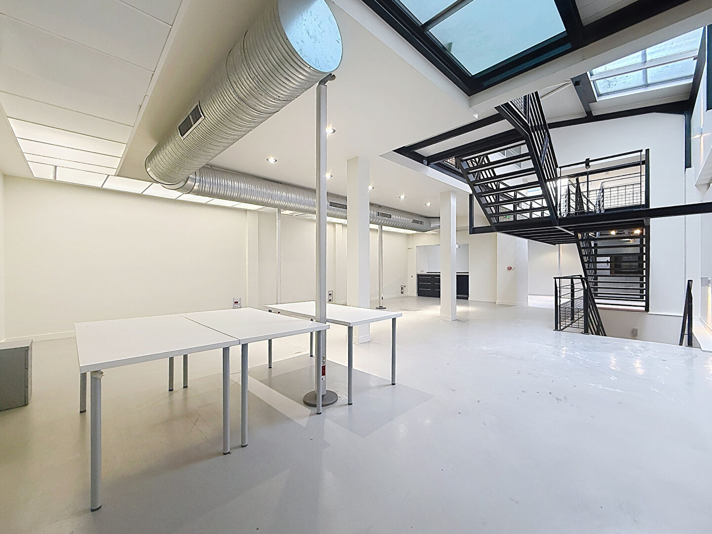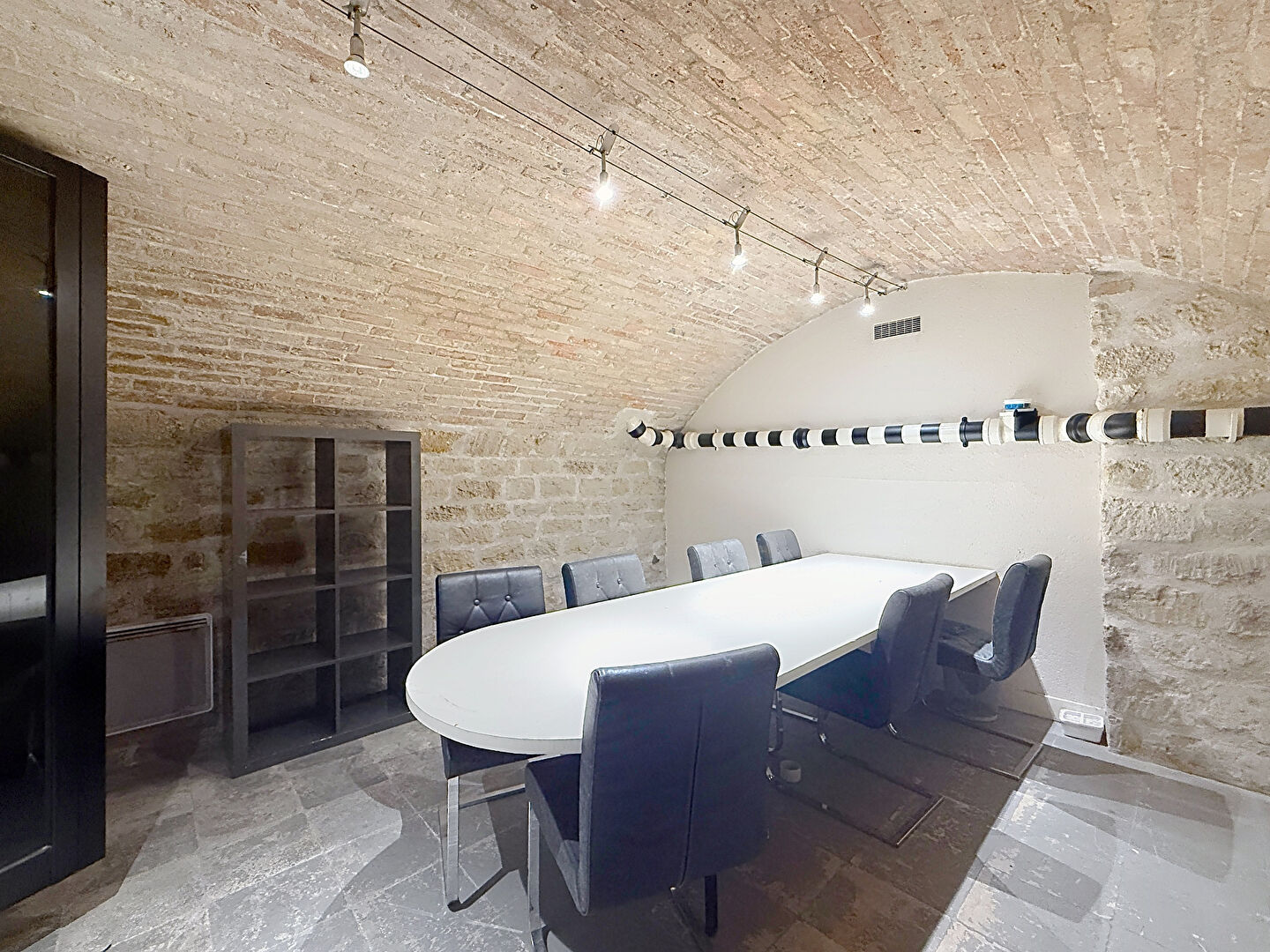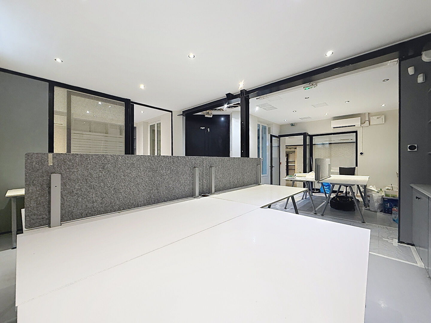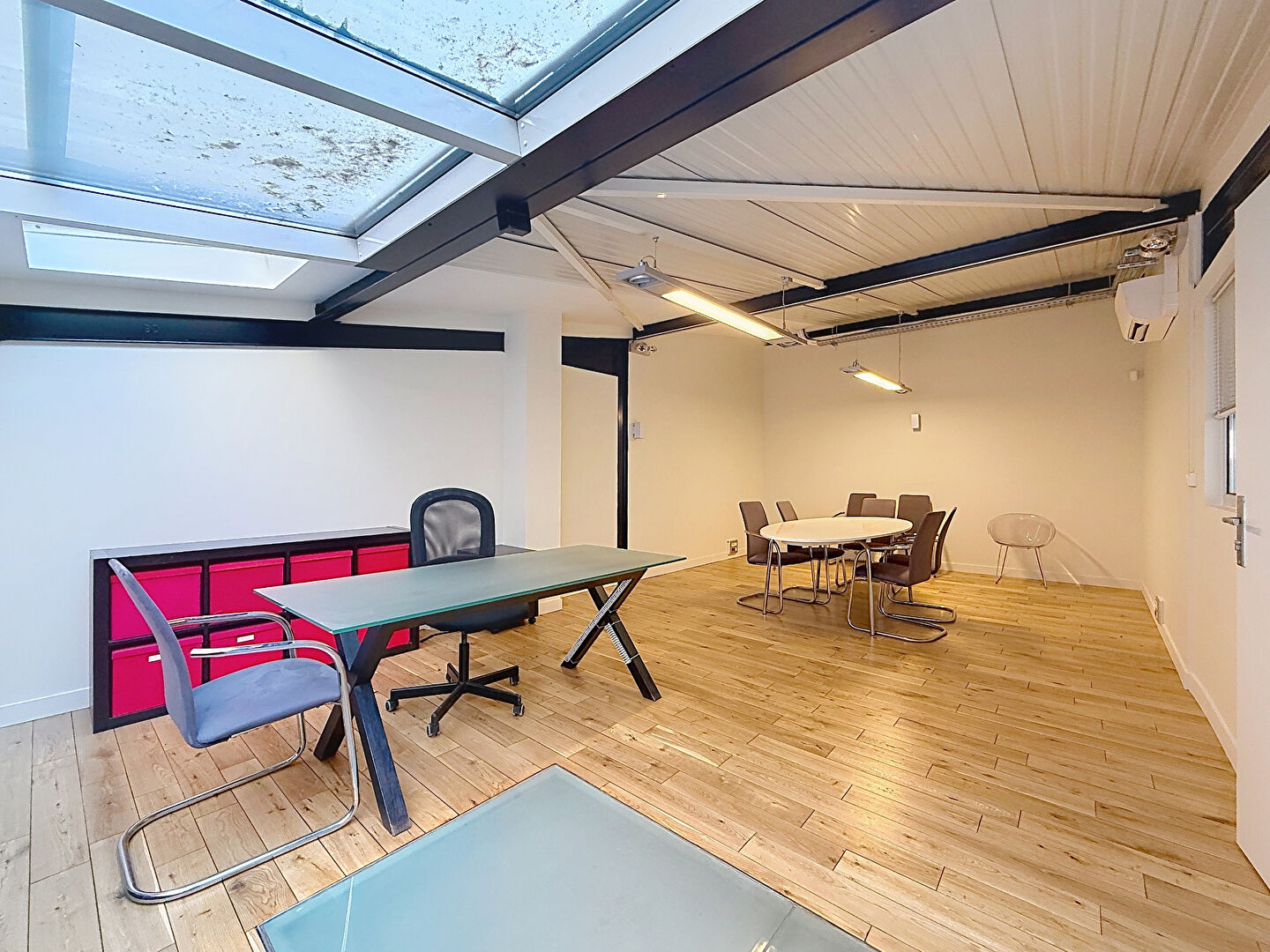 Sur 2 niveaux, ce local de bureaux est composé: d'un espace d'accueil, de quatre open space, de 7 bureaux, d'une cuisine donnant sur cour intérieure, d'un très grand espace pouvant faire office d'espace supplémentaire de bureaux ou réunion, d'un studio indépendant, d'une cave en sous sol accessible via le local. 8 places de parking en sus pour un montant de 9600 € annuel.