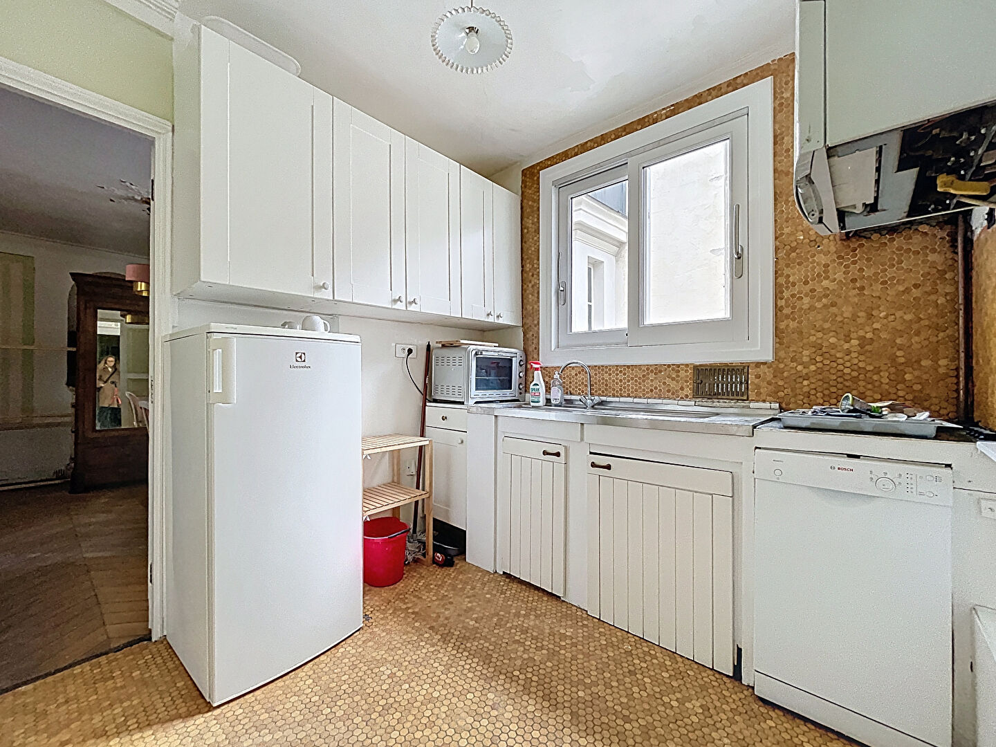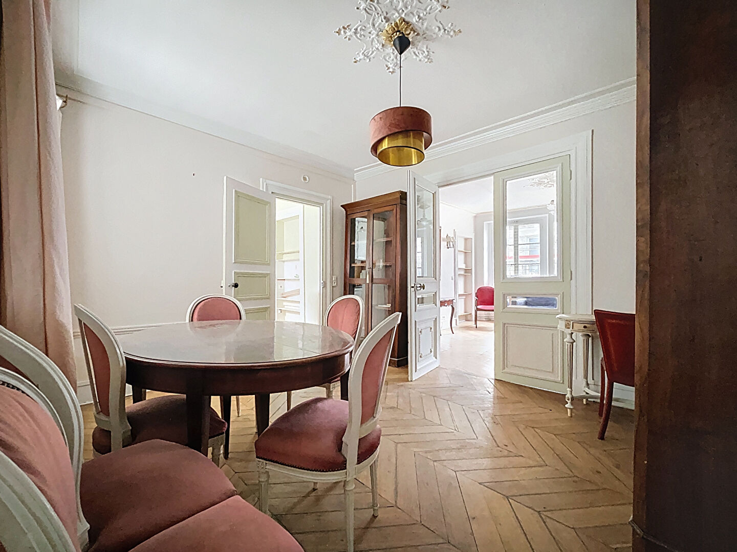 Quatre pièces MEUBLE de 77.02m² dans un bel immeuble ancien avec ascenseur au 4ème étage comprenant une entrée, un séjour, une salle à manger, deux chambres, une cuisine séparée, une salle d'eau et un wc séparés. Chauffage et eau individuels au gaz. LIBRE DE SUITE