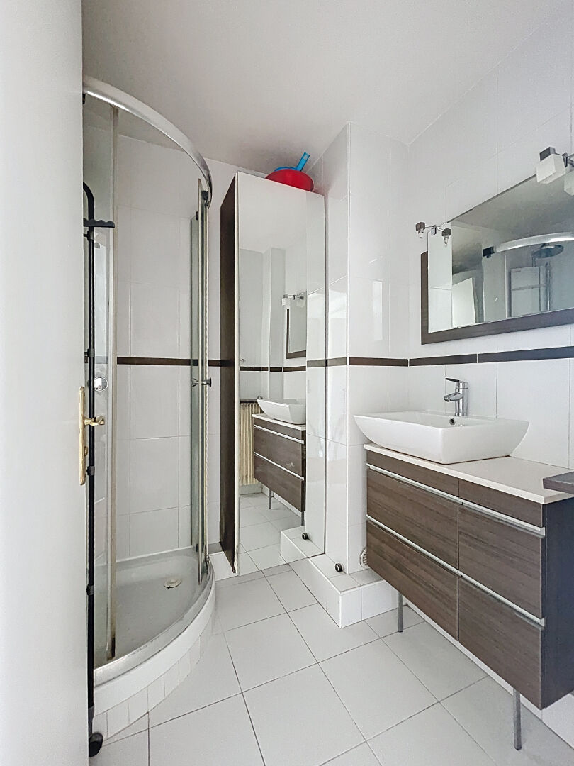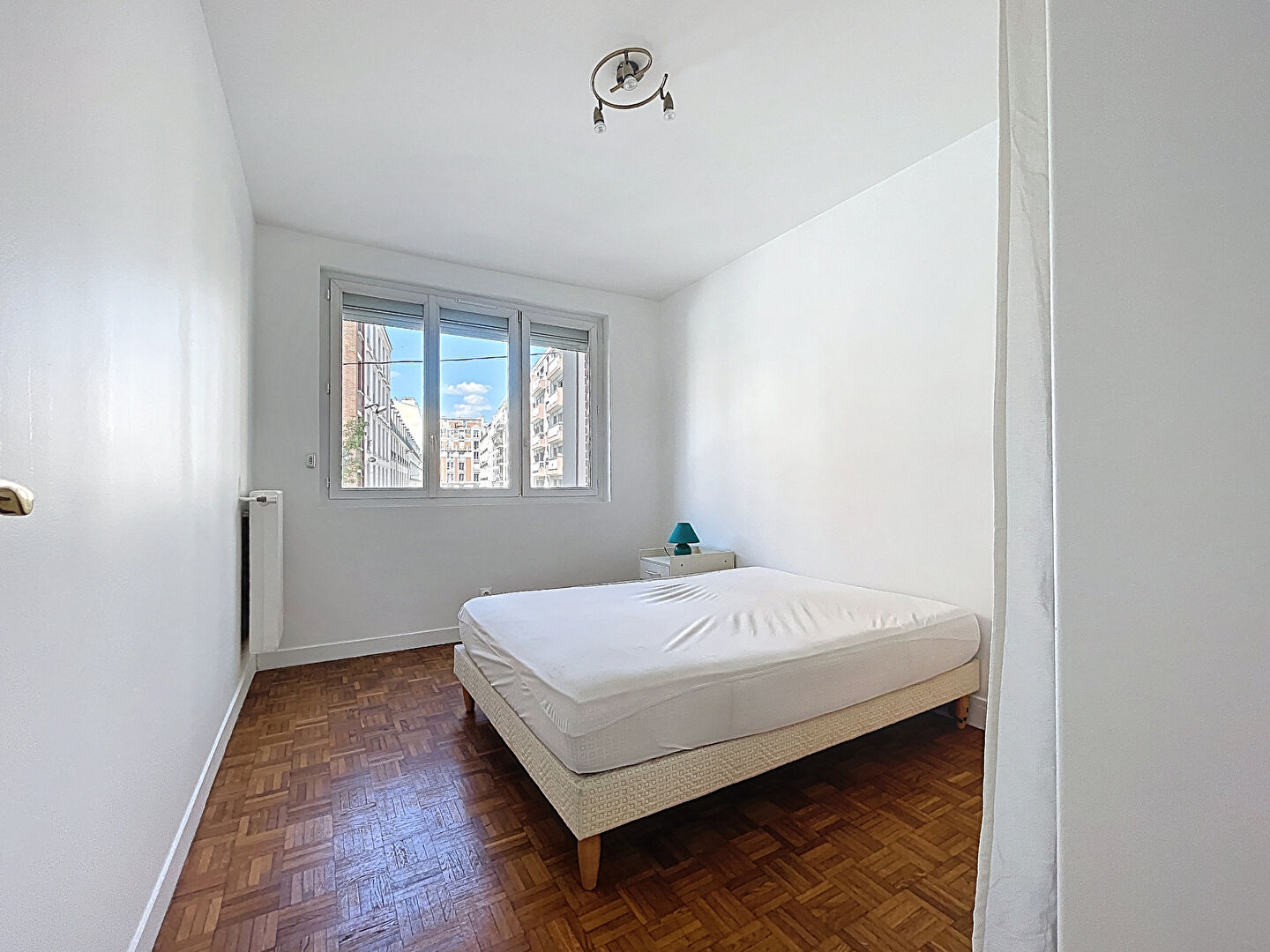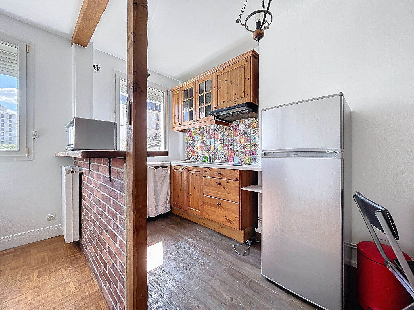 Deux pièces en bon état MEUBLE de 38.74m² au 1er étage comprenant une entrée, un séjour, une cuisine américaine, une chambre, une salle de douche et un wc séparés. Chauffage collectif. Libre de suite