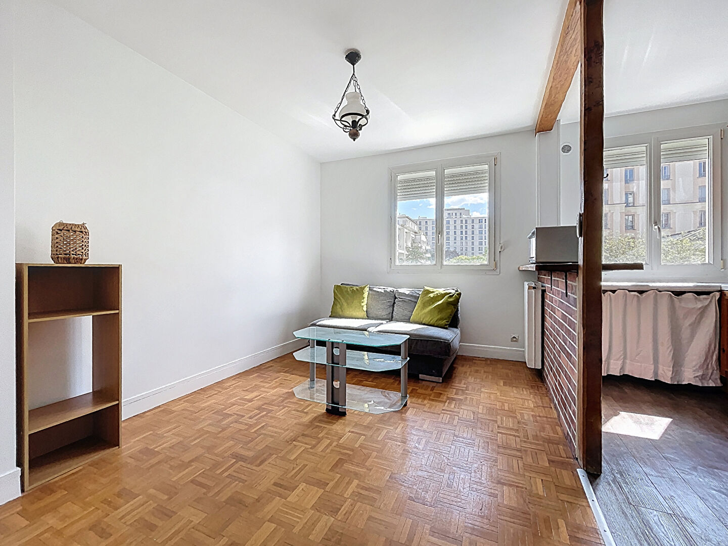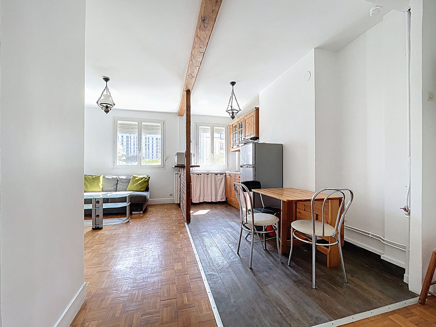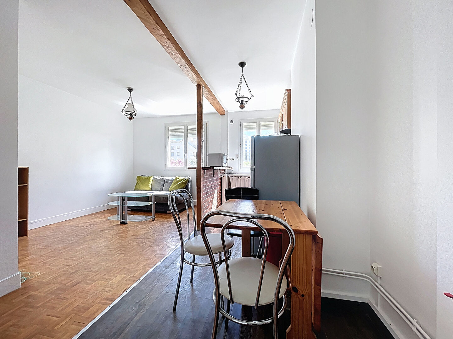 Deux pièces en bon état MEUBLE de 38.74m² au 1er étage comprenant une entrée, un séjour, une cuisine américaine, une chambre, une salle de douche et un wc séparés. Chauffage collectif. Libre de suite