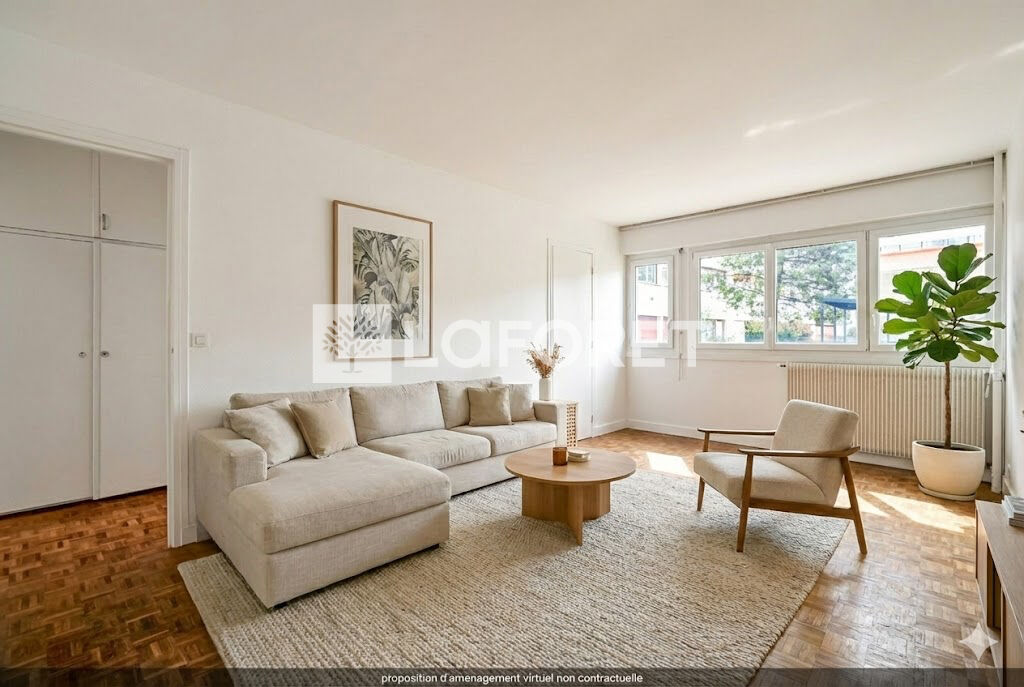 A proximité immédiate des transports et des commerces, dans un immeuble bien tenu par un gardien, un appartement de 62 m² situé au rez-de-chaussée qui se compose comme suit : une entrée avec rangements, un séjour orienté Est, une cuisine séparée (qui pourrait être ouverte sur le séjour), deux chambres, une salle de bains, des toilettes séparées, un espace dans l'entrée qui peut servir de bureau ou de dressing.