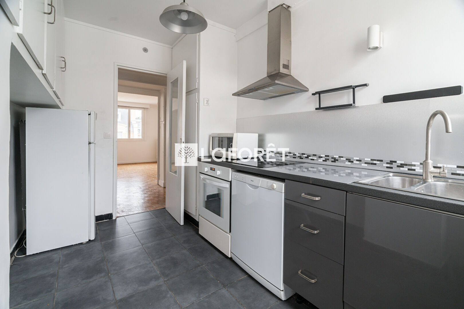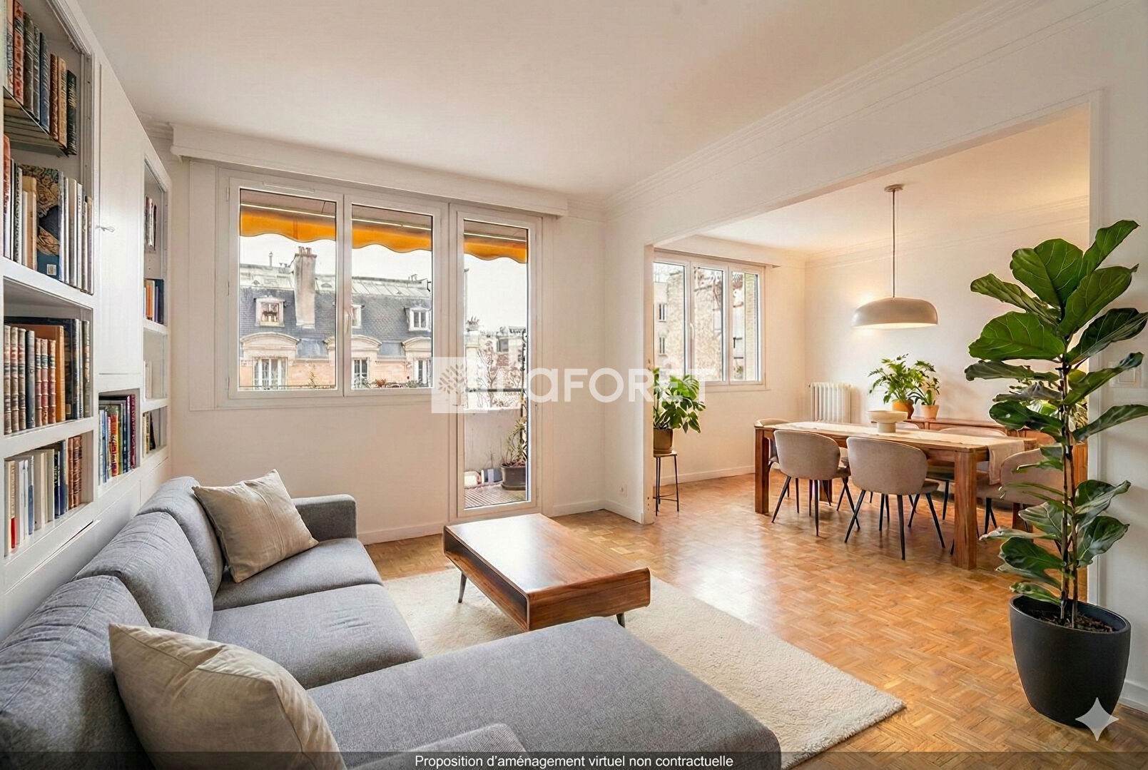 Au 6e étage, desservi par ascenseur, dans une copropriété bien tenue, un appartement de quatre pièces d'une superficie de 76,17 m² carrez, traversant et lumineux. Ce bien en bon état se compose comme suit : une entrée, un double séjour orienté Ouest et doté d'un balcon de 3,45 m², deux chambres (une chambre exposée à l'Est et une chambre exposée à l'Ouest), une cuisine indépendante, un dressing, une salle de bains, des toilettes séparées. Une cave. Local à vélo. Gardien