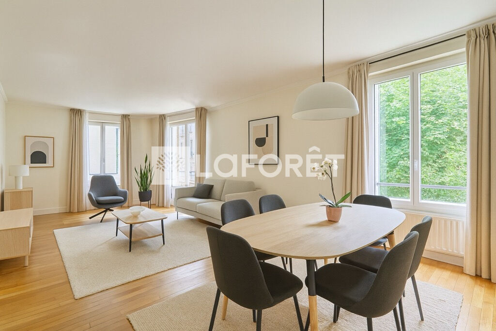 A 300 mètres de la rue de Passy, dans une copropriété très bien tenue avec gardien, un appartement familial de 110 m², composé d'un double séjour de 40m² exposé Ouest, une cuisine dinatoire séparée, trois chambres de bonne taille, dont une avec sa salle d'eau, une salle de bains avec WC et un WC séparé. Plan idéal, sans perte d'espace. Au calme et à deux pas de la chaussée de la Muette, de la rue de Passy et ses boutiques et des jardins du Ranelagh. Ligne 9, RER C. Chauffage et eau chaude collectifs. Vendu avec une cave. Possibilité d'acquérir un box pour 2 voitures dans l'immeuble en sus du prix. (la 1ère et la 5ème photo sont virtuelles).