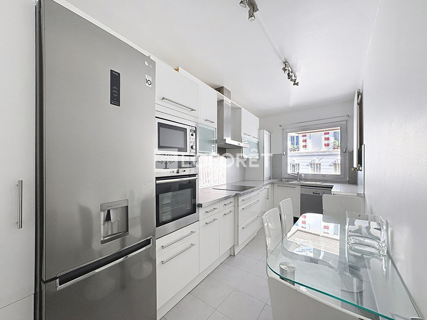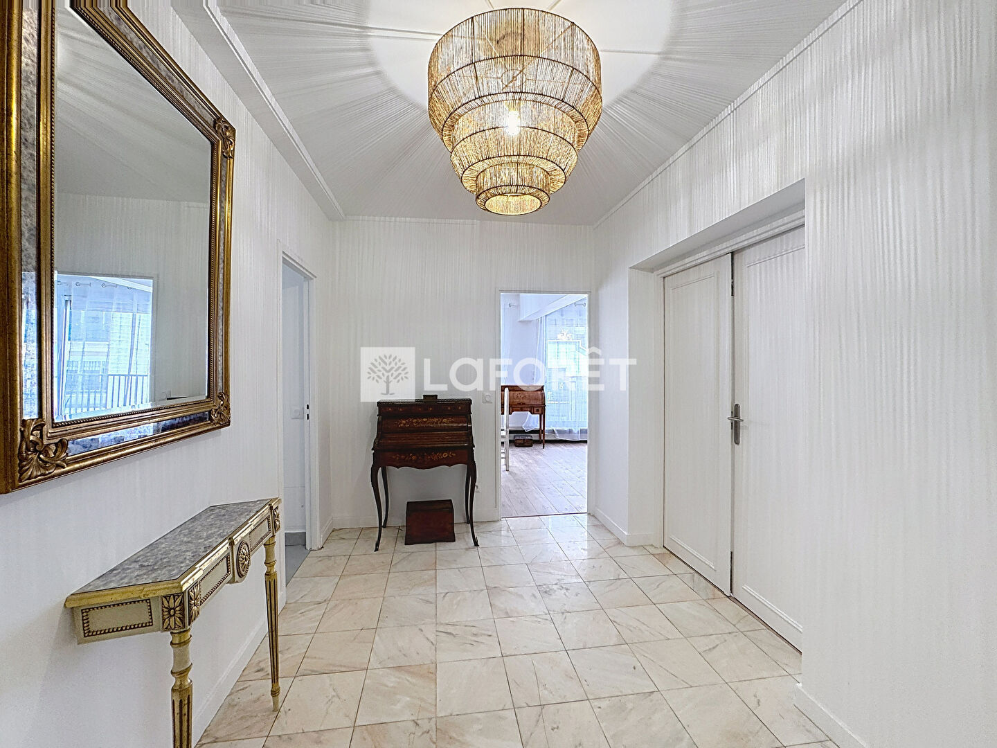 Appartement de 4 pièces meublé de 103,83 m² comprenant : une entrée, un double séjour de 40m² donnant sur un grand balcon, une cuisine aménagée et équipée, un dégagement avec de grands placards donnant sur deux chambres dont une avec balcon, une salle de bains et un WC.
