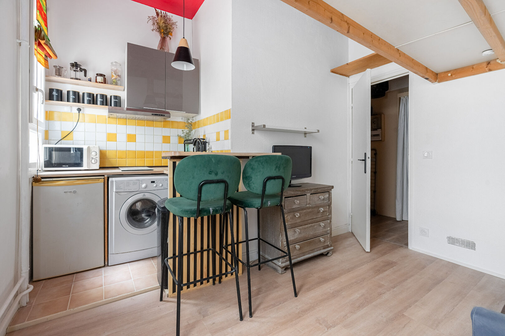 L'appartement bénéficie de la vue sur une cour intérieure, apportant calme et tranquillité. Idéal pour un étudiant ou un investissement locatif.