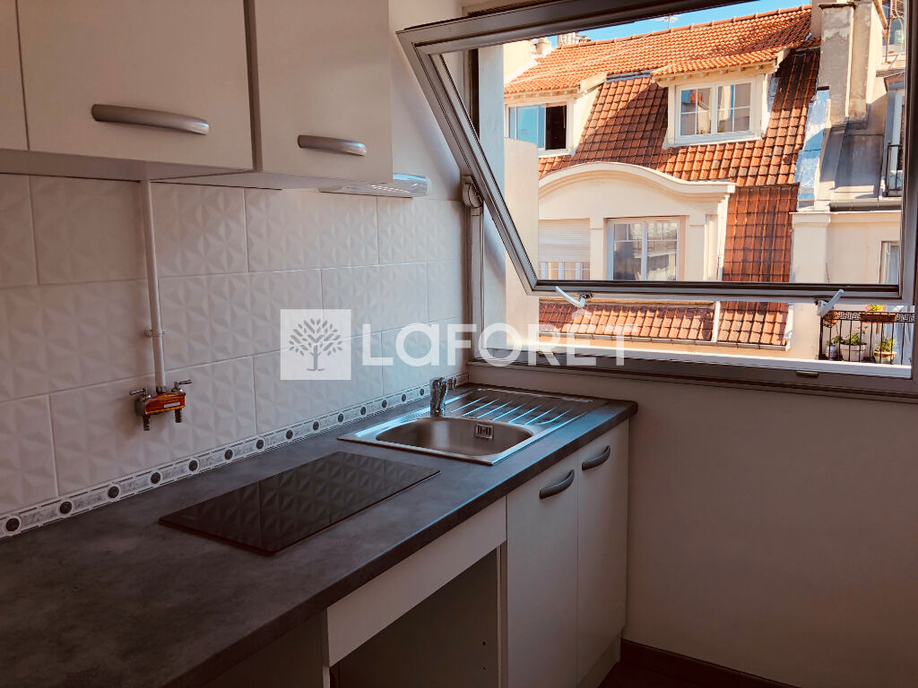 Studio non meublé situé au sixième étage comprenant une entrée avec des placards, une pièce à vivre avec coin nuit, une cuisine aménagée, une salle de bain avec wc. Possibilité de brancher une machine à laver.