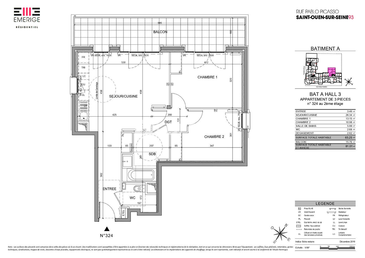 65 m² • 3 pièces • 2 chambres