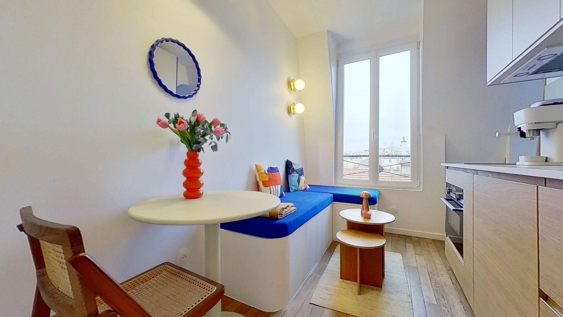 Au 6ème étage sans ascenseur, studio composé d'une entrée donnant sur une pièce de vie avec cuisine ouverte aménagée et équipée, d'un coin nuit et d'une salle d'eau avec WC.