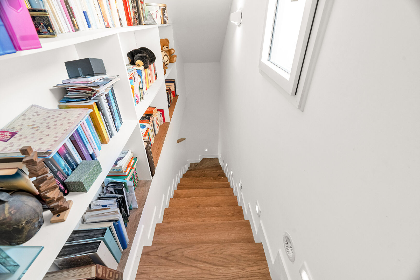 Répartie sur trois niveaux, elle offre un vaste espace de vie d'environs 65,5m² comprenant un salon lumineux ainsi qu'une cuisine entièrement aménagée et équipée, ouverte sur un séjour particulièrement agréable, baigné d'une luminosité naturelle exceptionnelle.