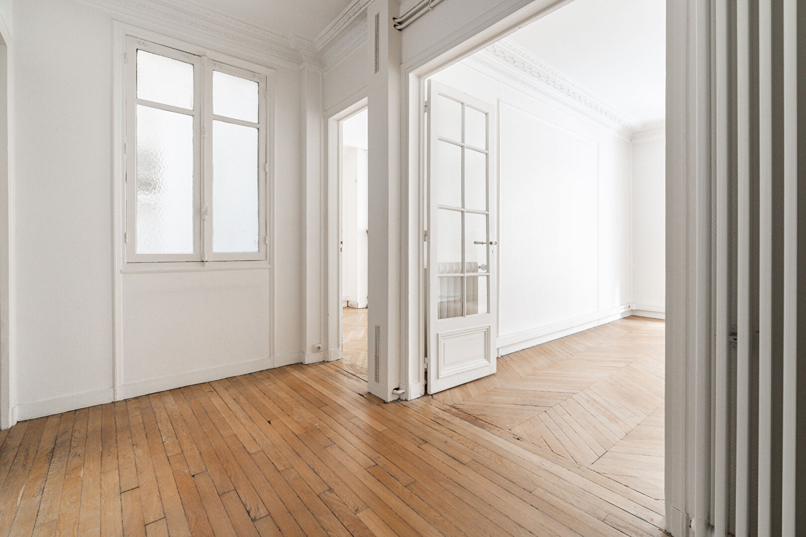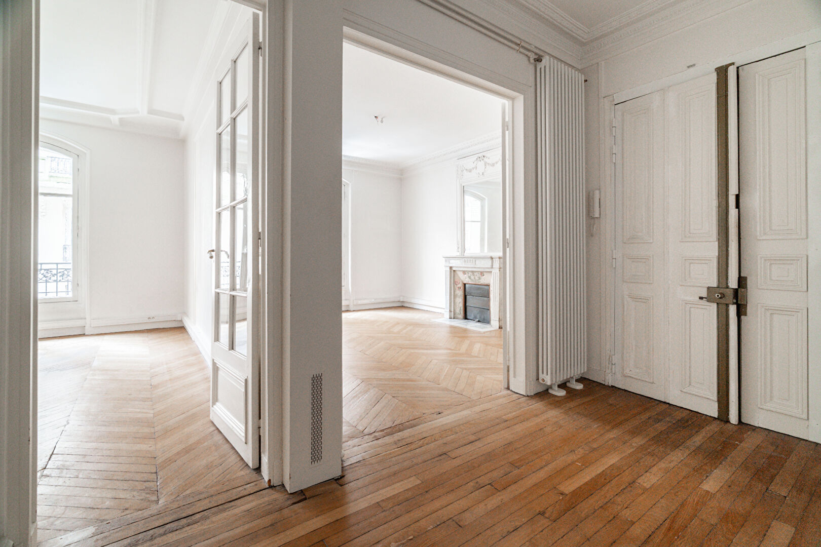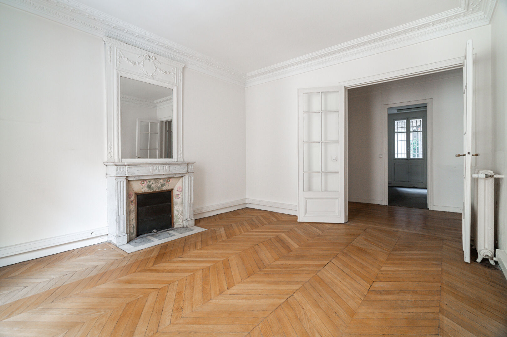 Au 1er étage d'un immeuble pierre de taille, parfaitement entretenu avec gardien, ce 114m² familial bénéficie d'un emplacement recherché dans le village Saint Ferdinand et des commerces des Ternes.