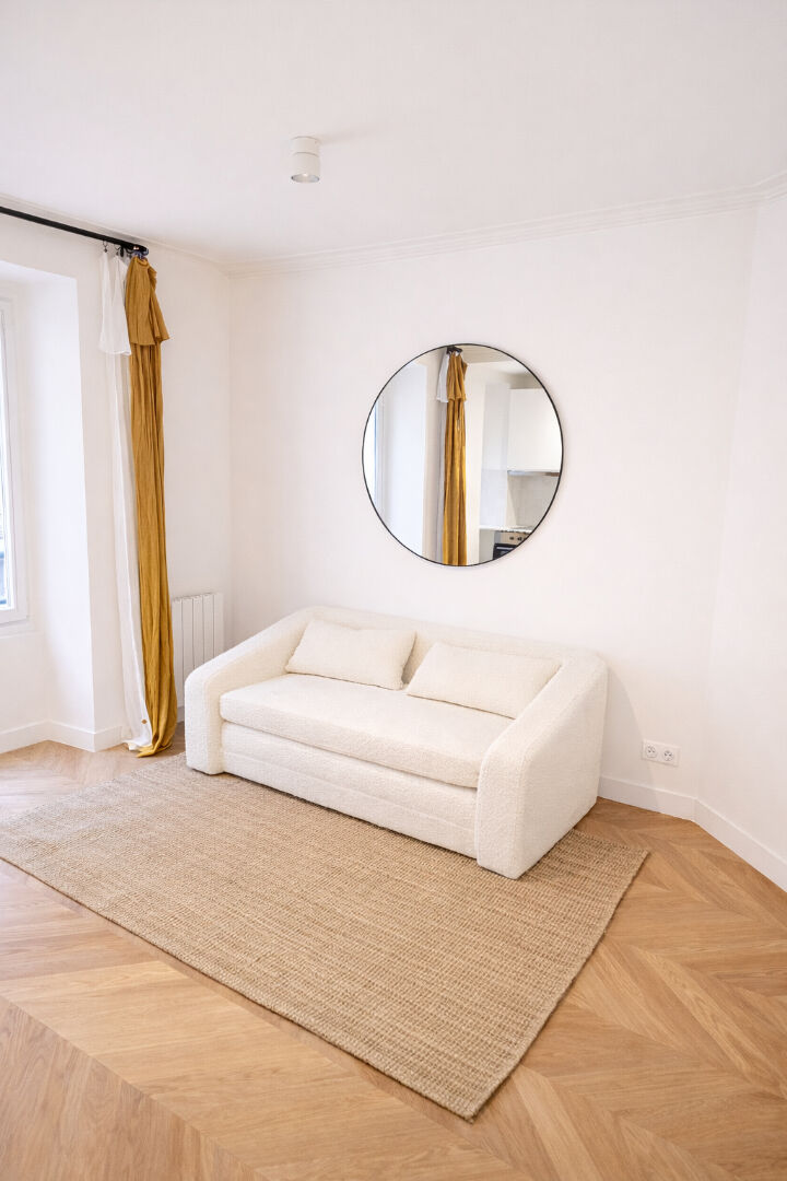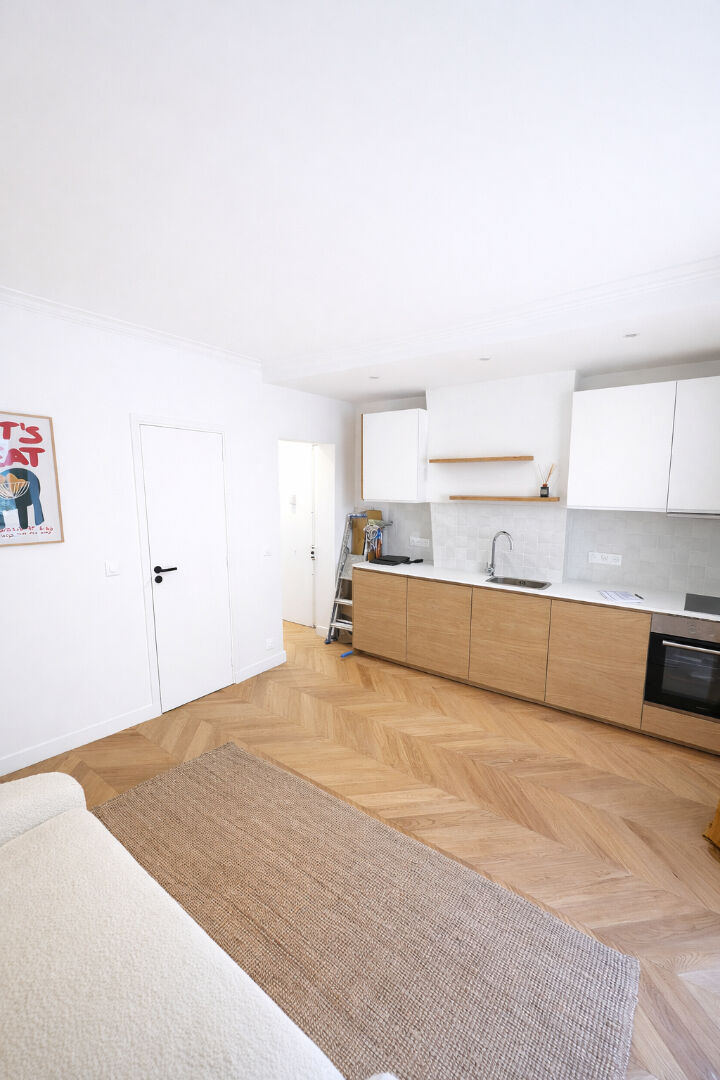Situé au 4ème étage au calme sur cour, il se compose d'une entrée avec rangements, d'un séjour avec cuisine ouverte et équipée (Réfrigérateur encastré, four, plaque induction, lave-linge), d'une salle d'eau avec WC .
