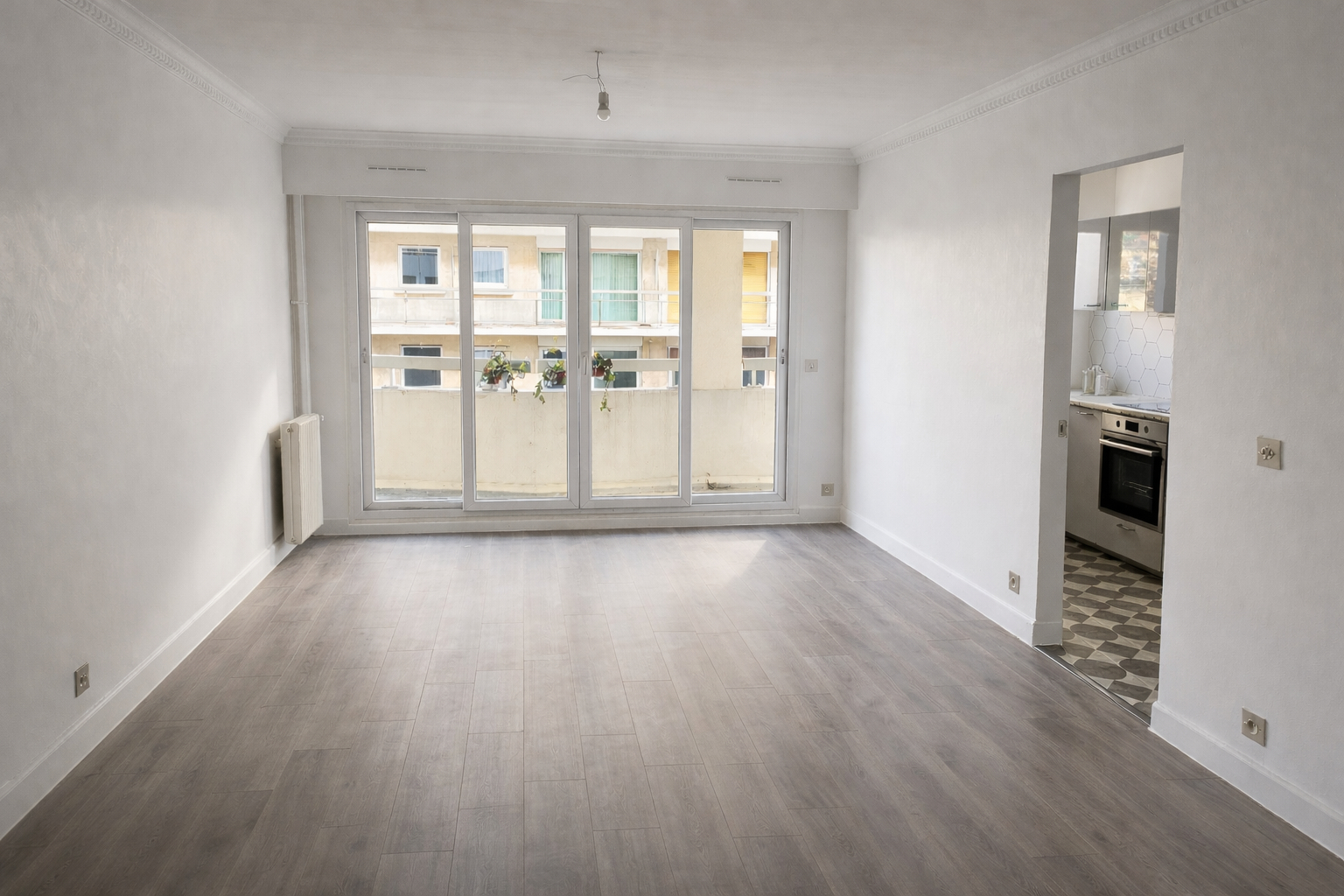 Situé au 1er étage avec ascenseur, il se compose d'un séjour, une cuisine séparée, une chambre, une salle d'eau avec WC et d'un balcon.