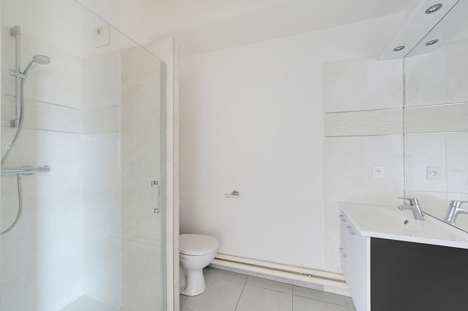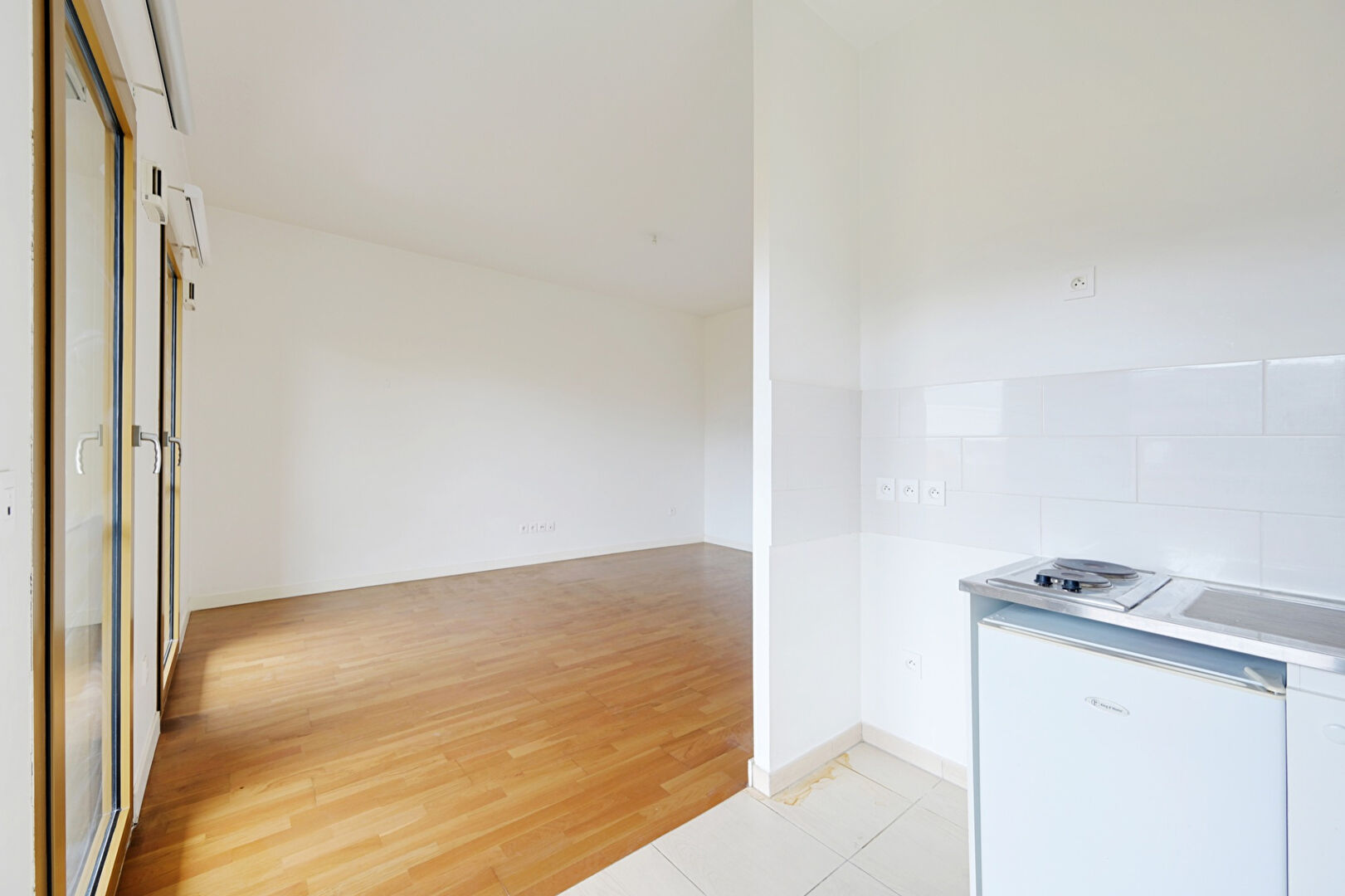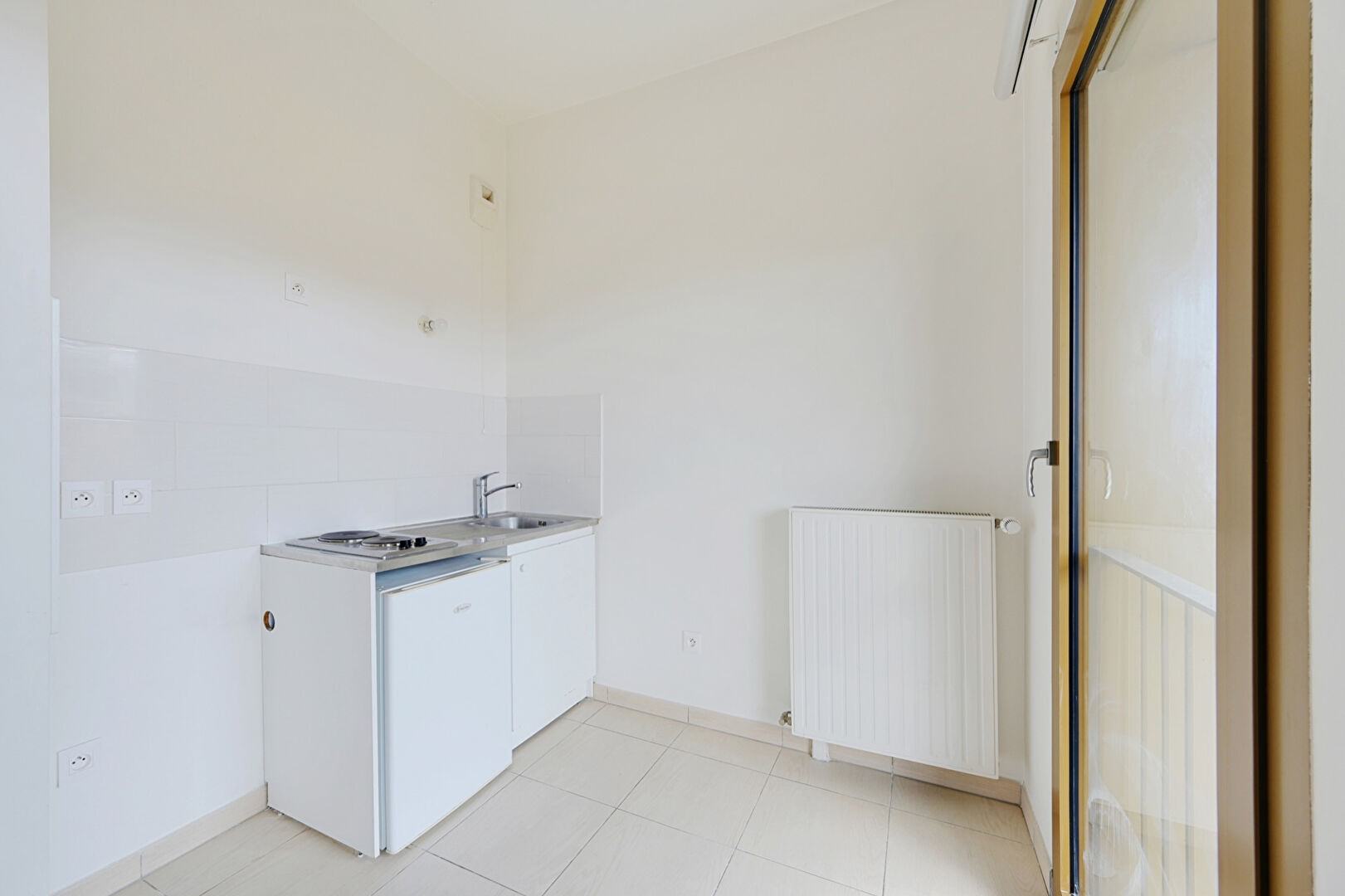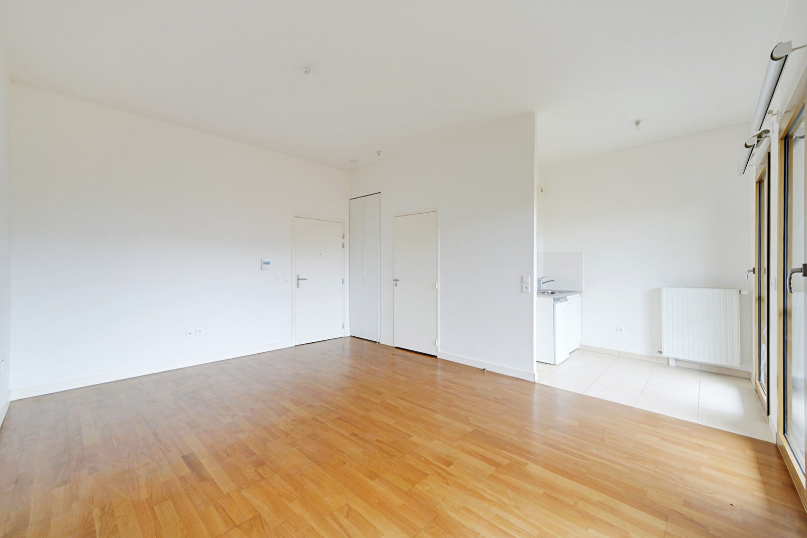 Dans une copropriété récente, au 3ème étage, un plan sans perte d'espace et fonctionnel comme se suit : une pièce à vivre, coin cuisine et une salle d'eau avec WC.