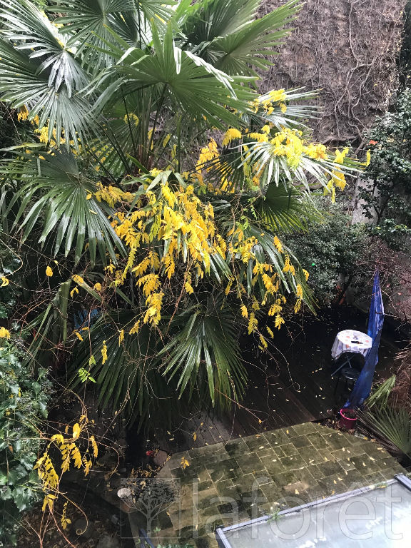 Il se compose d'une entrée, d'une agréable pièce de vie bénéficiant de belles ouvertures sur une cour intérieure végétalisée, d'une chambre, d'une cuisine aménagée, d'une salle de bains, ainsi que de WC séparés.