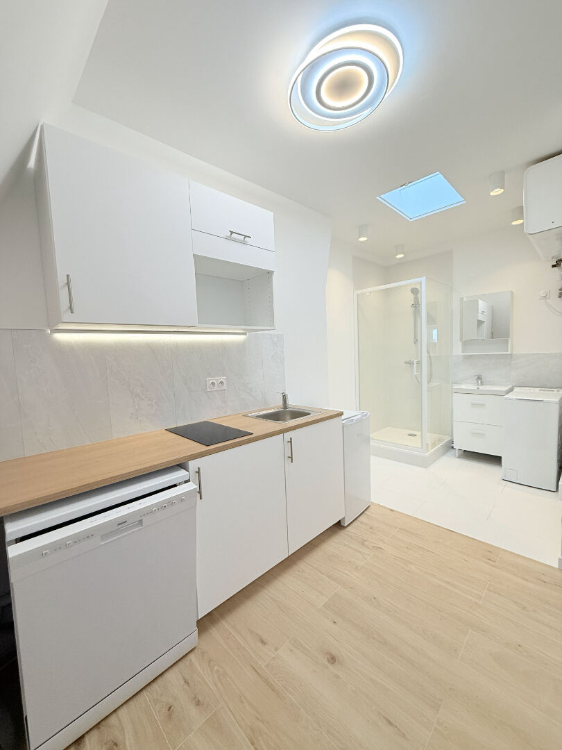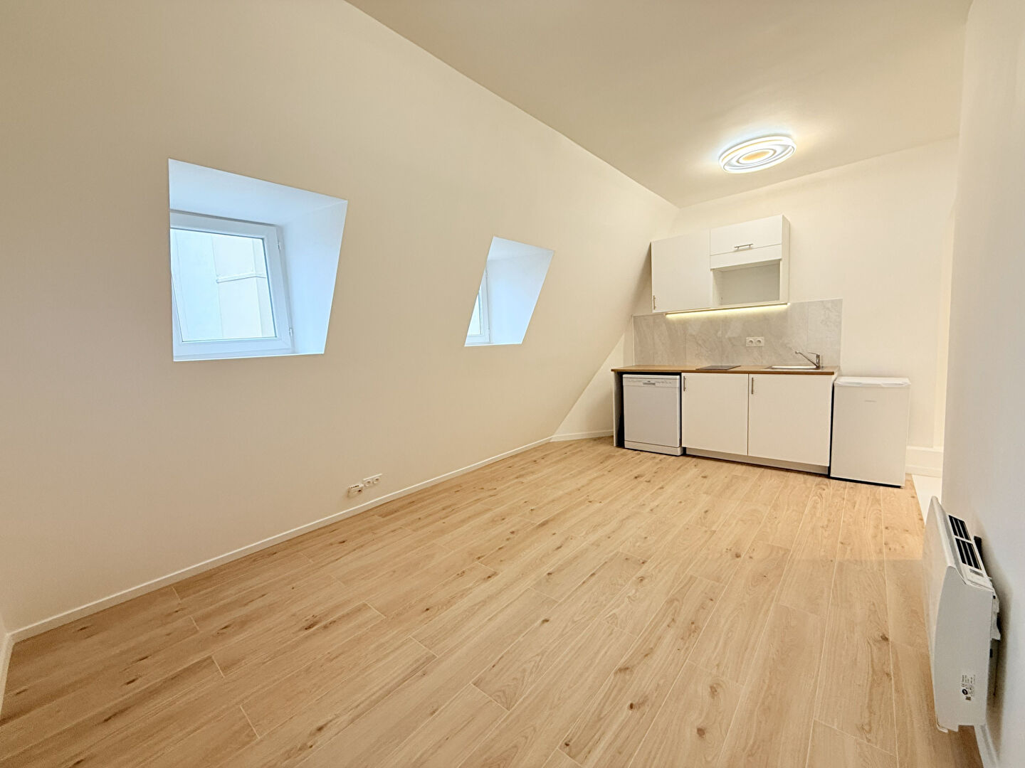 Rue Saint-Lazare, au 6ème et dernier étage avec ascenseur, Laforêt Jules Joffrin vous propose ce studio de 20m², très calme et ENTIEREMENT REFAIT A NEUF, composé d'une pièce de vie principale avec cuisine équipée et aménagée (réfrigérateur, plaques de cuisson, lave-vaisselle) et coin salle d'eau avec douche, lavabo et machine à laver et un WC séparé.