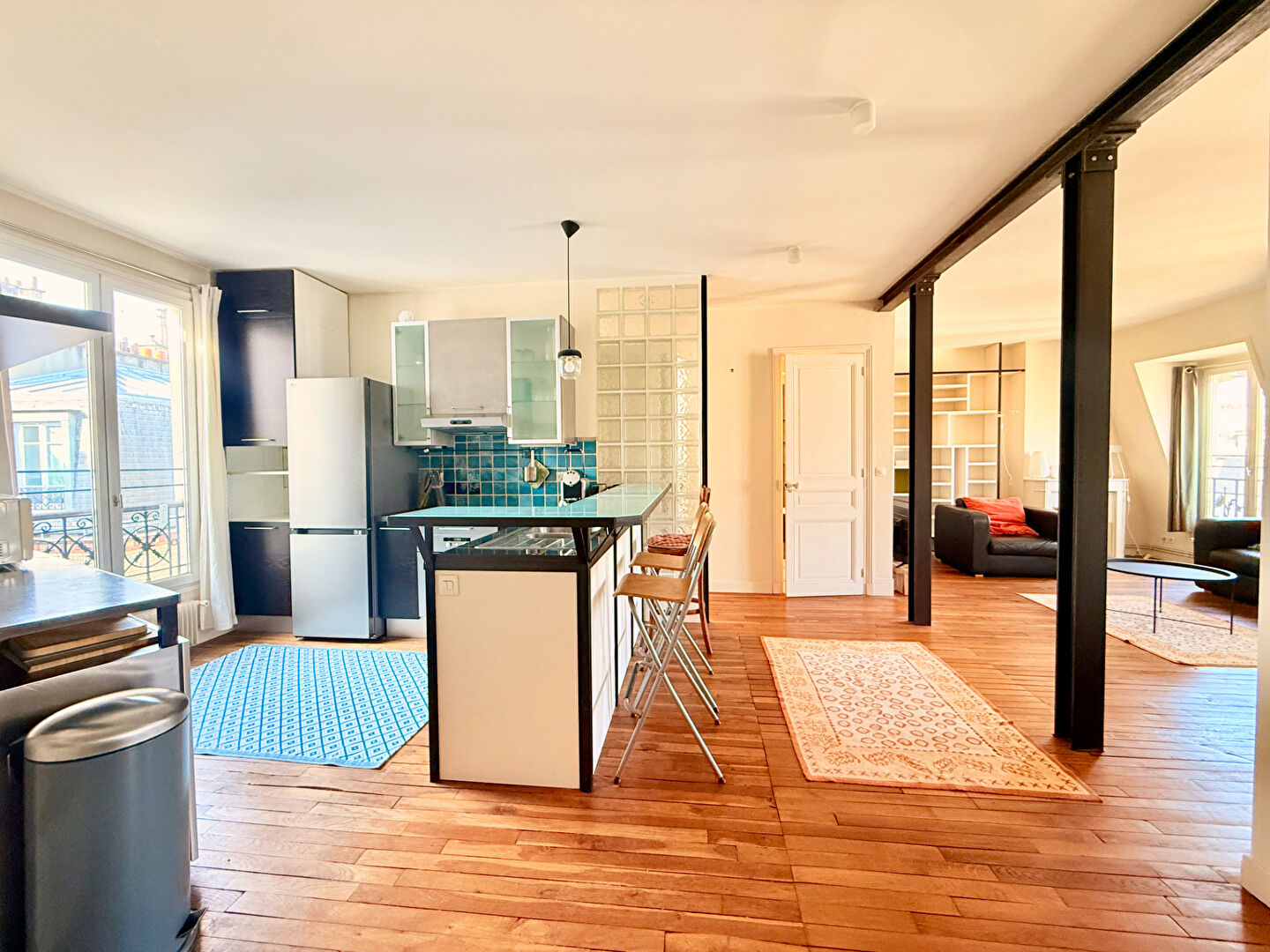 Rue Duc , au 6ème étage sans ascenseur d'un bel et ancien immeuble, Laforêt Jules Joffrin vous propose ce superbe appartement 3 pièces meublé de 66.56m². Il se compose d'une grande pièce de vie traversante avec entrée, un grand placard de rangement, une cuisine ouverte entièrement équipée et aménagée, un coin séjour très lumineux, une salle de bains, de deux chambres dont une avec bureau et l'autre avec placard de rangement et d'un WC séparé.