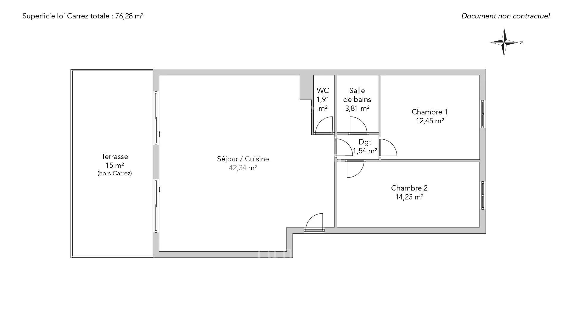 76 m² • 3 pièces • 2 chambres