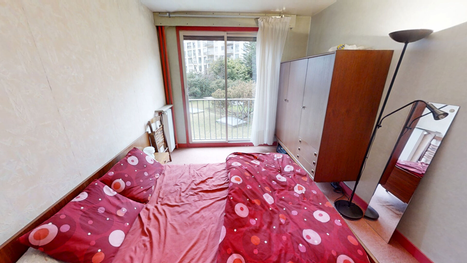 Il se compose d'un séjour, de trois chambres donnant sur un jardin, d'une cuisine indépendante, d'une salle de bain ainsi que d'un cagibi offrant un espace de rangement supplémentaire. L'appartement dispose également d'un balcon permettant de profiter d'un extérieur.