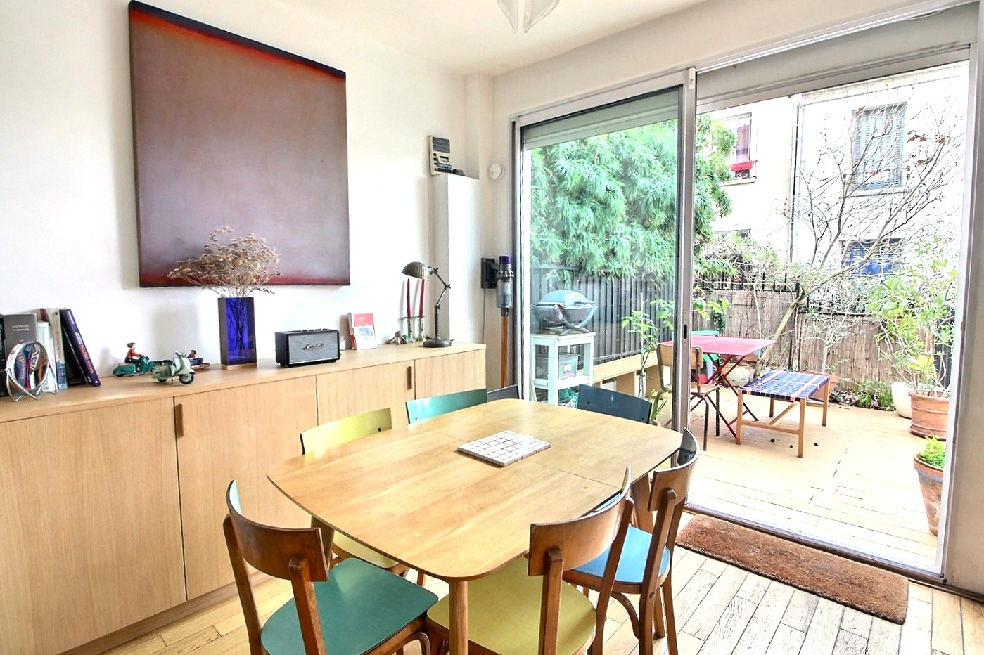 Quartier Mouzaïa/Buttes Chaumont , découvrez cette charmante maison de 93 M² au sol, nichée dans un quartier constitué de passages et de maisons. Rénovée récemment avec de très beaux matériaux, la maison dispose au rez de chaussée, d' un grand séjour de 35 M² comprenant un espace salon chaleureux avec cheminée fonctionnelle et un coin dinatoire proche de la terrasse extérieure. La cuisine ouverte, aménagée et conviviale, complète cet espace de vie familial. Au premier étage figure une grande chambre avec dressing et une spacieuse salle de bain comportant baignoire et douche. Au 2ème étage, une deuxième chambre spacieuse et confortable pouvant être divisée en deux chambres. À l'extérieur, une terrasse de 14m², ensoleillée permet de profiter pleinement d' un extérieur. Un sous sol de 10 m² accessible par la terrasse complète ces prestations. Située très proche des buttes Chaumont, des écoles, des commerces du quartier de Jourdain et des transports, cette maison constitue une opportunité rare pour s'installer dans un quartier résidentiel prisé, combinant confort, tranquillité et accessibilité.