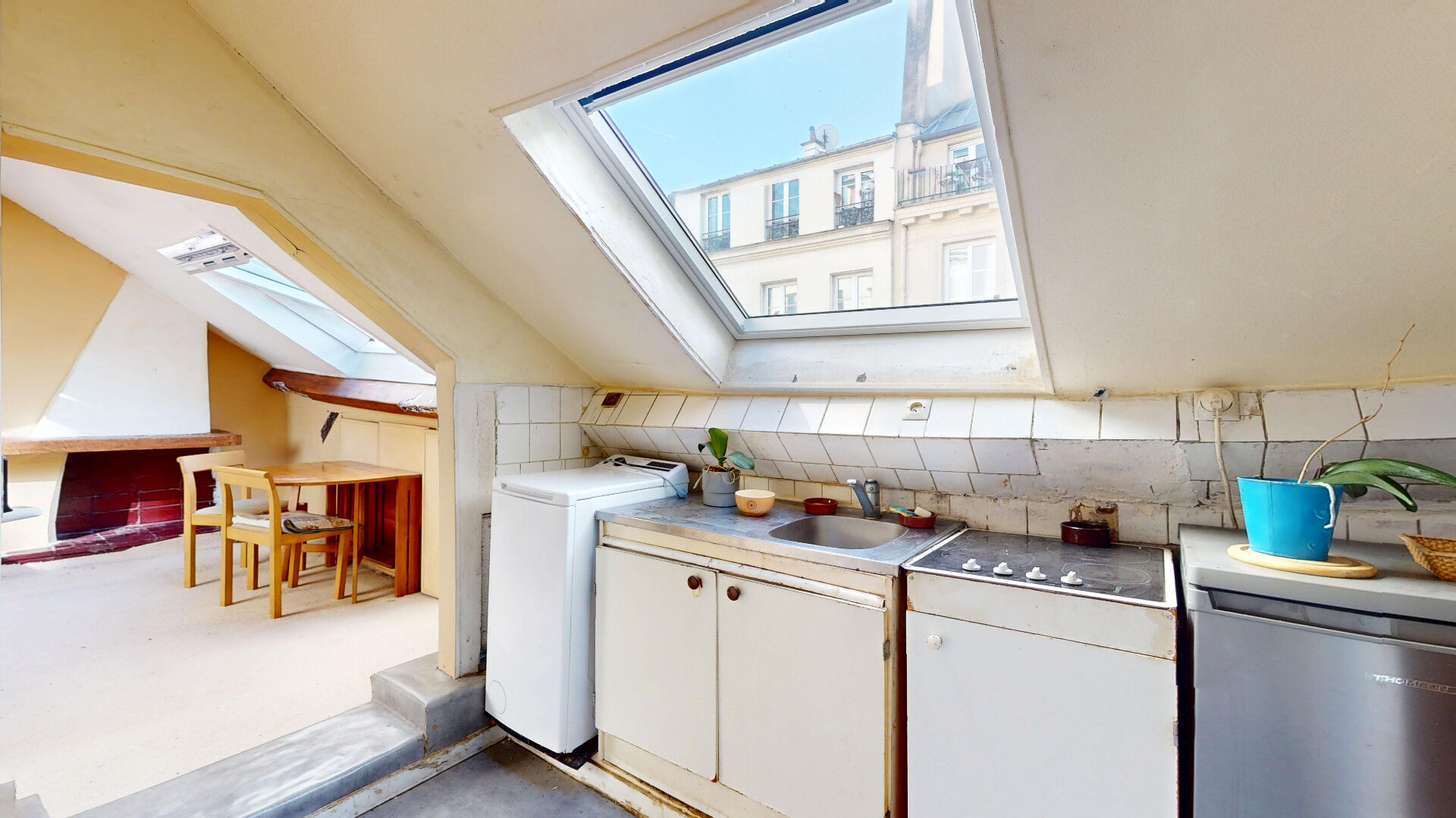 Nous avons le plaisir de vous proposer cet appartement de 32.18m² au sol (11,40m² carrez) au 4ème et dernier étage sans ascenseur au sein d'un immeuble ancien parfaitement entretenu. Il est composé comme suit : une pièce principale avec coin nuit, une cuisine indépendante, une salle d'eau avec WC (vrai WC). L'appartement est traversant sur la rue et la cour. Calme et ensoleillement. Des travaux sont à prévoir. Aux pieds du Canal Saint Martin et à proximité immédiate de la place de la République et des commerces. Visite virtuelle : https://my.matterport.com/show/?m=Kfyc9XQG47s