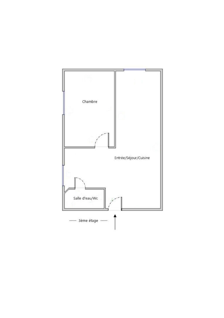 Le plan actuel est le suivant : entrée avec séjour et cuisine, salle d'eau avec WC, chambre séparée. une cave complète ce bien.