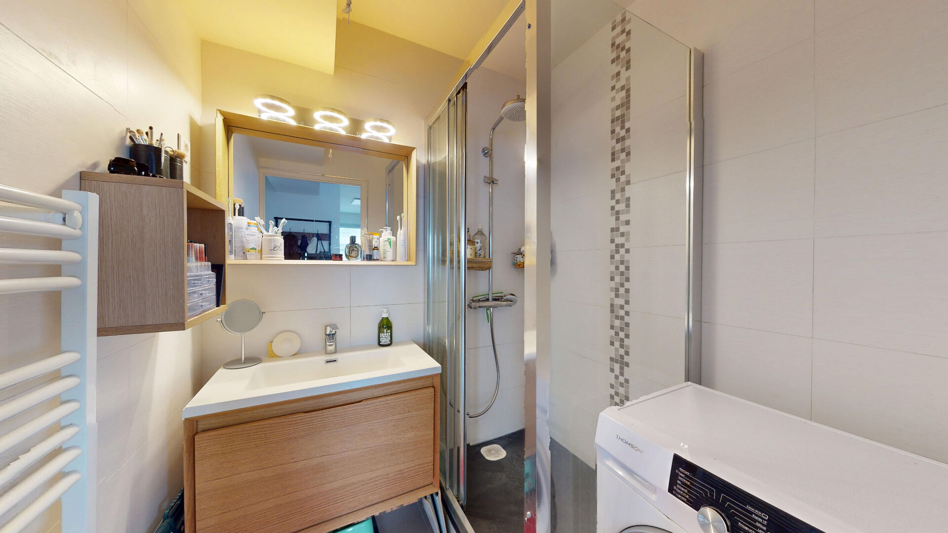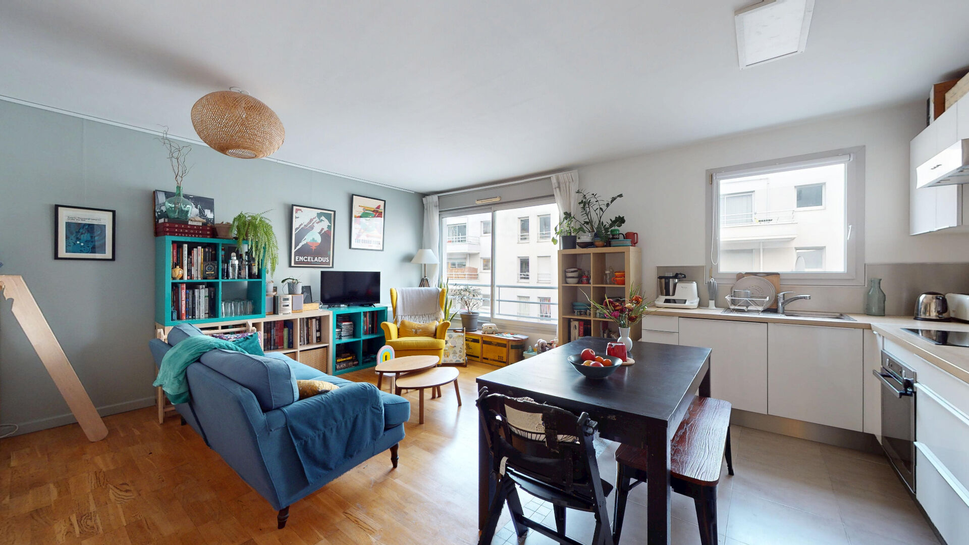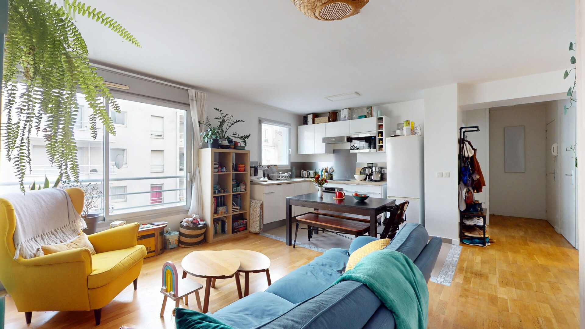 A équidistance du Canal de l'Ourcq et des commerces et métro Laumière, un appartement 2 pièces de 47,12m² carrez au 4ème étage avec ascenseur au sein d'un immeuble moderne des années 2000 parfaitement entretenu. Ce bien dispose d'un agencement optimisé (cf plan et visite virtuelle) : une entrée avec rangements, une grande pièce de vie de 31m² avec cuisine aménagée et équipée, actuellement organisée en salon, espace nuit et coin bureau.. Une chambre avec rangements de 10m². Le tout donnant sur une cour calme et dégagée exposé Nord Est. Ainsi qu'une salle d'eau avec WC séparé. Vendu avec une cave. Un emplacement de parking en sous-sol est disponible en sus. Locaux à vélos dans l'immeuble. Aucun travaux à prévoir. DPE : C. Visite virtuelle : https://my.matterport.com/show/?m=w1ZG8rUiGk3