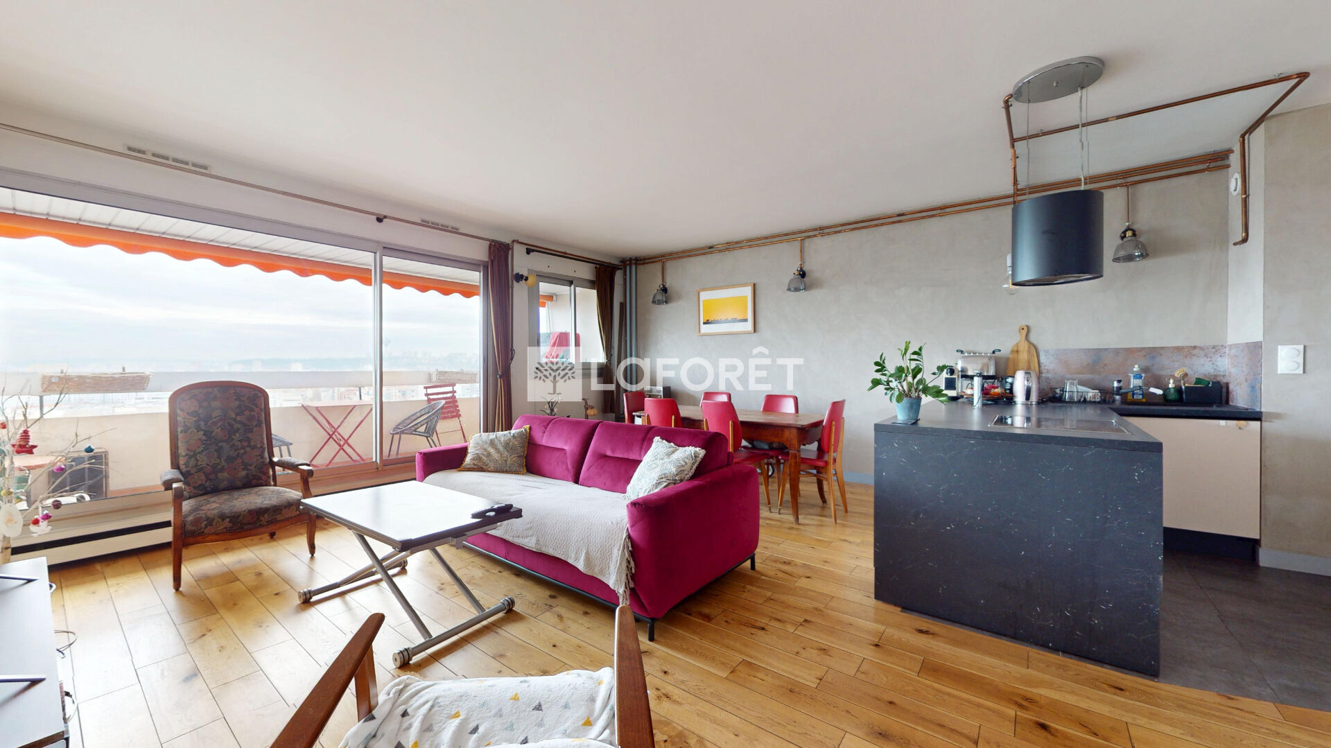 Votre agence Laforêt vous présente un appartement situé au 20e étage de la résidence du Grand Belvédère avec vue imprenable sur l'Est Parisien. Ce 3 pièces de 73,49m2 Carrez dispose d'un agencement optimisé comme suit (cf plan et visite virtuelle) : une entrée desservant une grande pièce de vie avec cuisine américaine aménagée et équipée de 37m² donnant sur une loggia de 8m², 2 chambres de 11.09m² dont une avec loggia de 2m² , une salle de bain, une buanderie avec dressing et un WC séparé. Nombreux rangements. Vendu avec une cave et un emplacement de parking. Pas de travaux à prévoir, DPE C. Calme et lumineux avec vue entièrement dégagée.