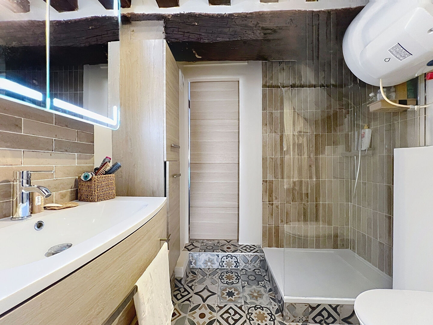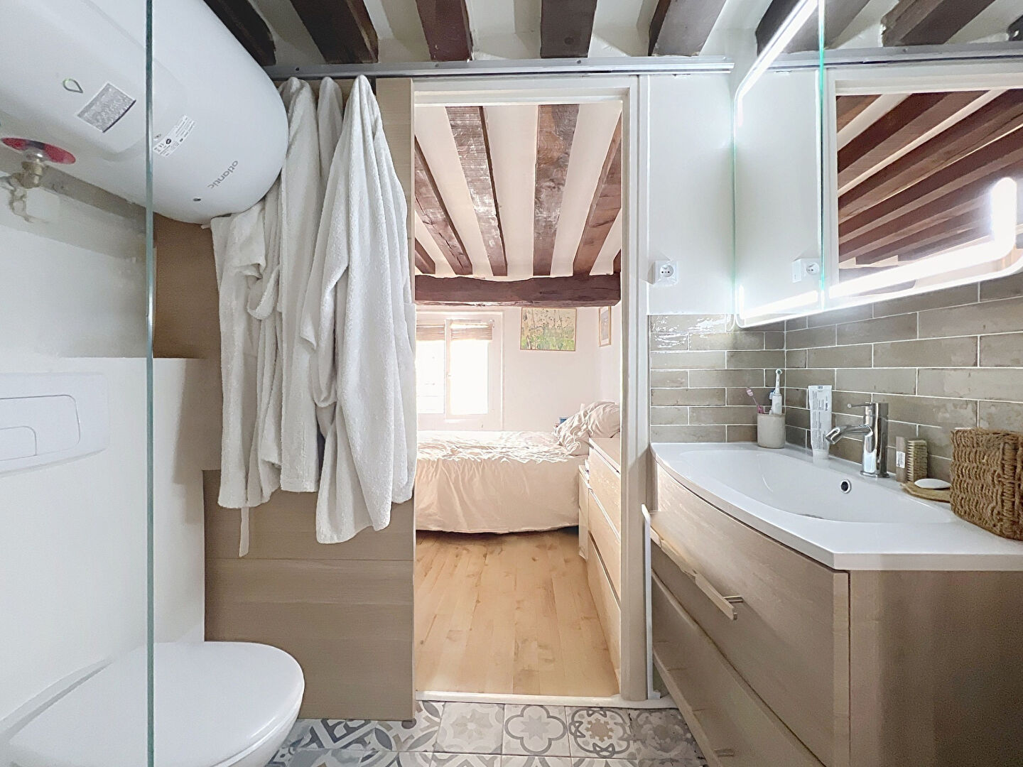 Entièrement rénové avec goût, ce bien se compose d'une entrée avec rangements, d'une chambre attenante à une salle d'eau avec W.C., ainsi que d'une belle pièce de vie très lumineuse grâce à son exposition plein Ouest, une cuisine aménagée et entièrement équipée.