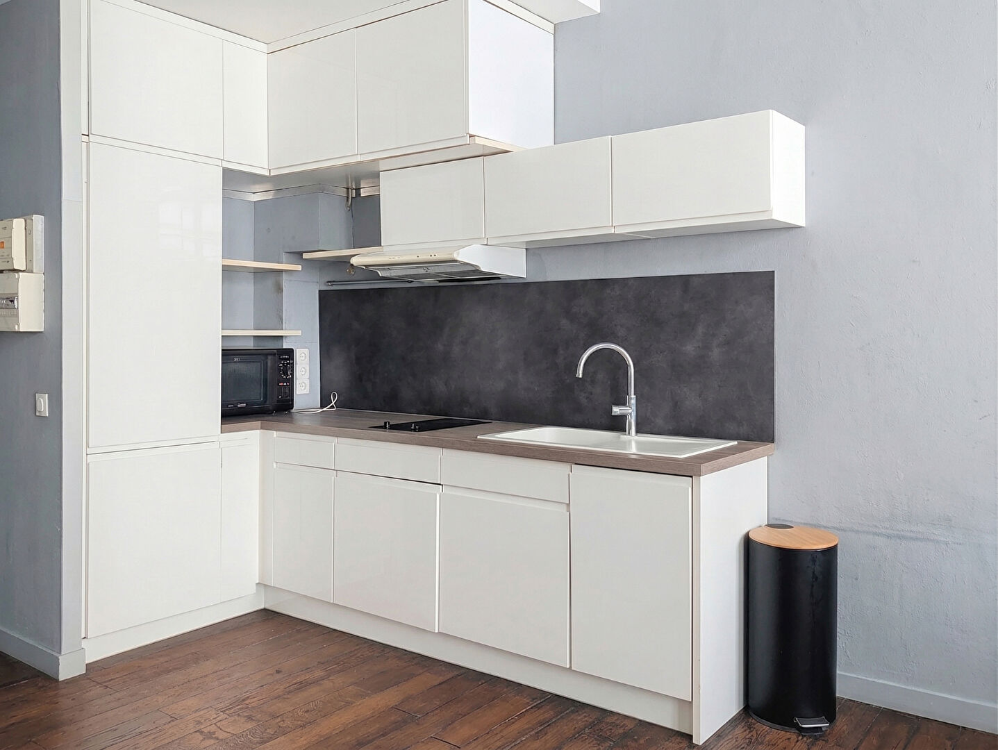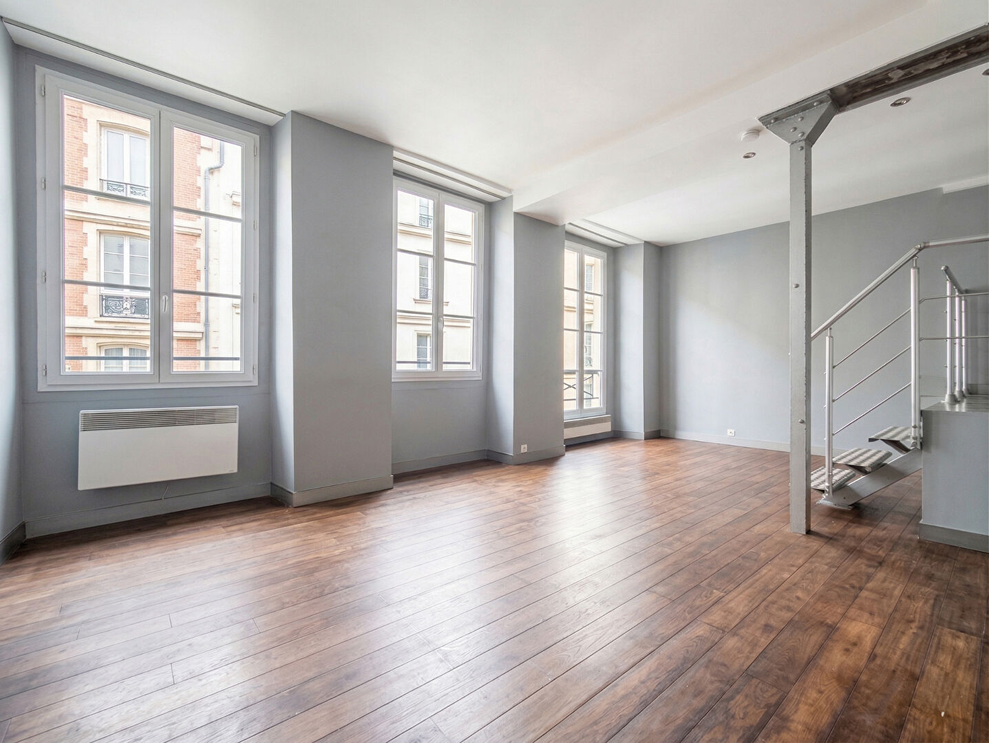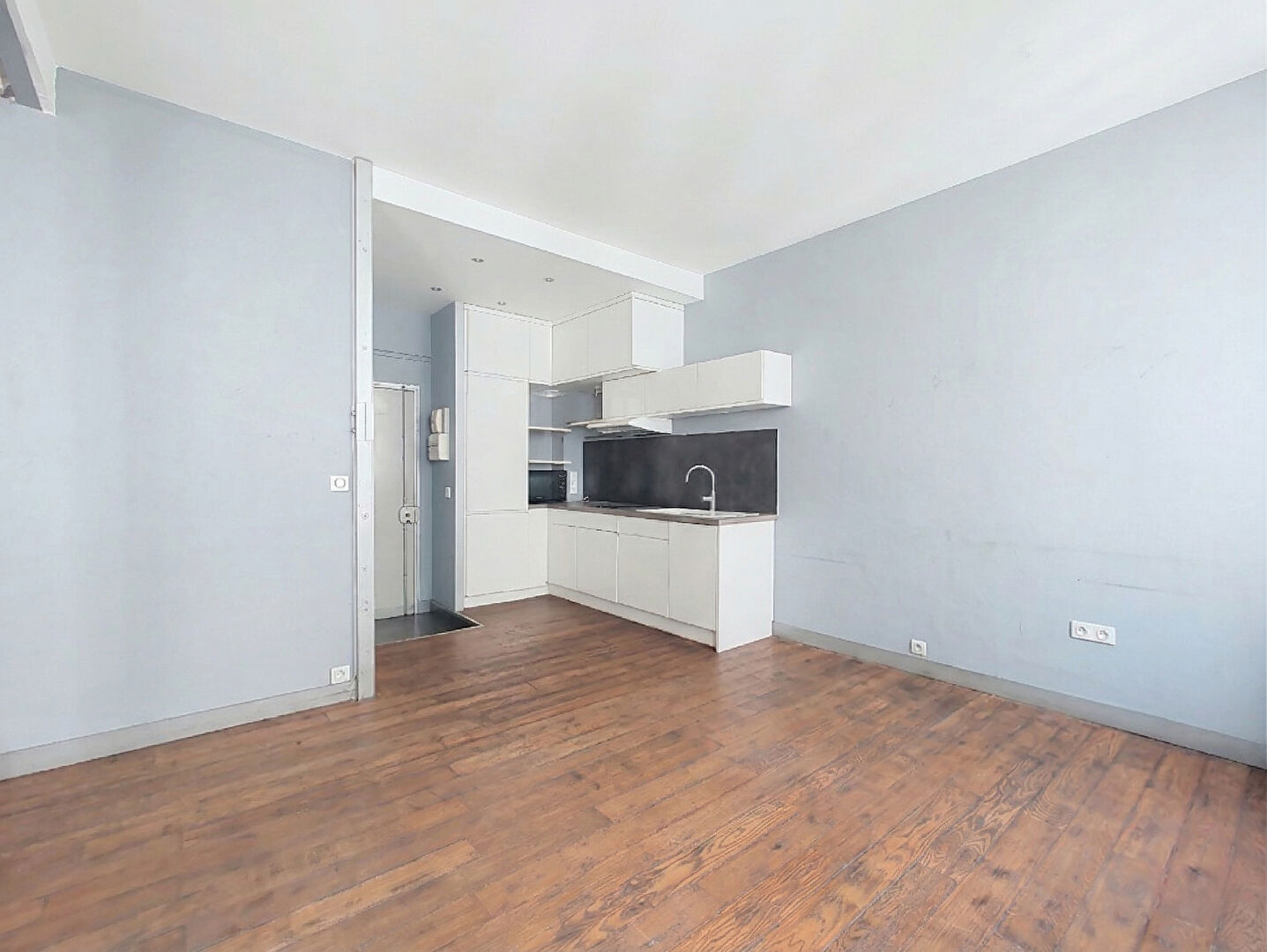 Aujourd'hui configuré en grand studio, l'appartement peut évoluer très simplement : il est possible de créer une chambre avec fenêtre sans gros travaux, ce qui permet de se projeter facilement dans un vrai deux pièces, sans compromis sur la luminosité.
