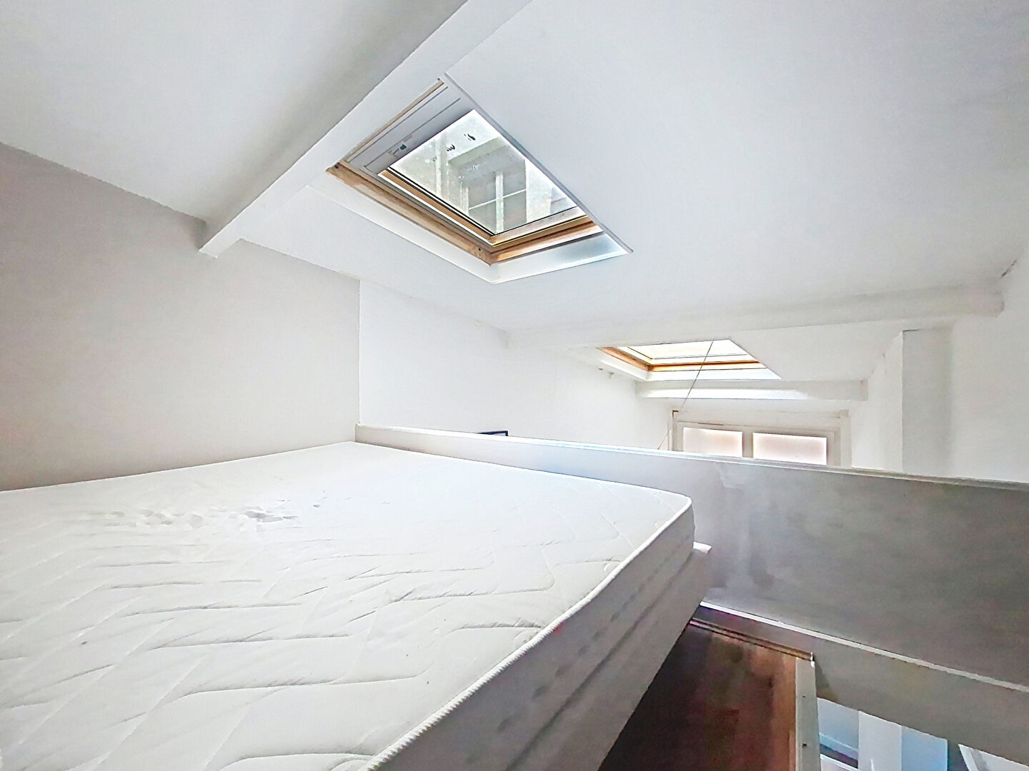 Cet appartement sur plusieurs niveaux, est composé d'une pièce de vie lumineuse disposant de nombreux puits de lumières avec une très belle hauteur sous plafond , sur une mezzanine de 4 m², on peut accéder à un couchage, au niveau inférieur, une cuisine aménagée et équipée , une salle de bain avec WC .