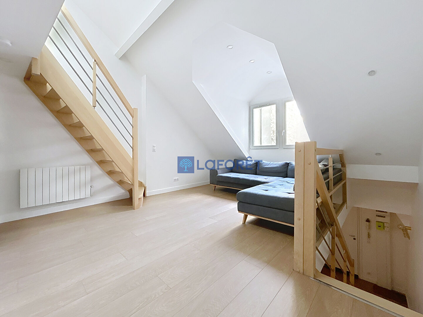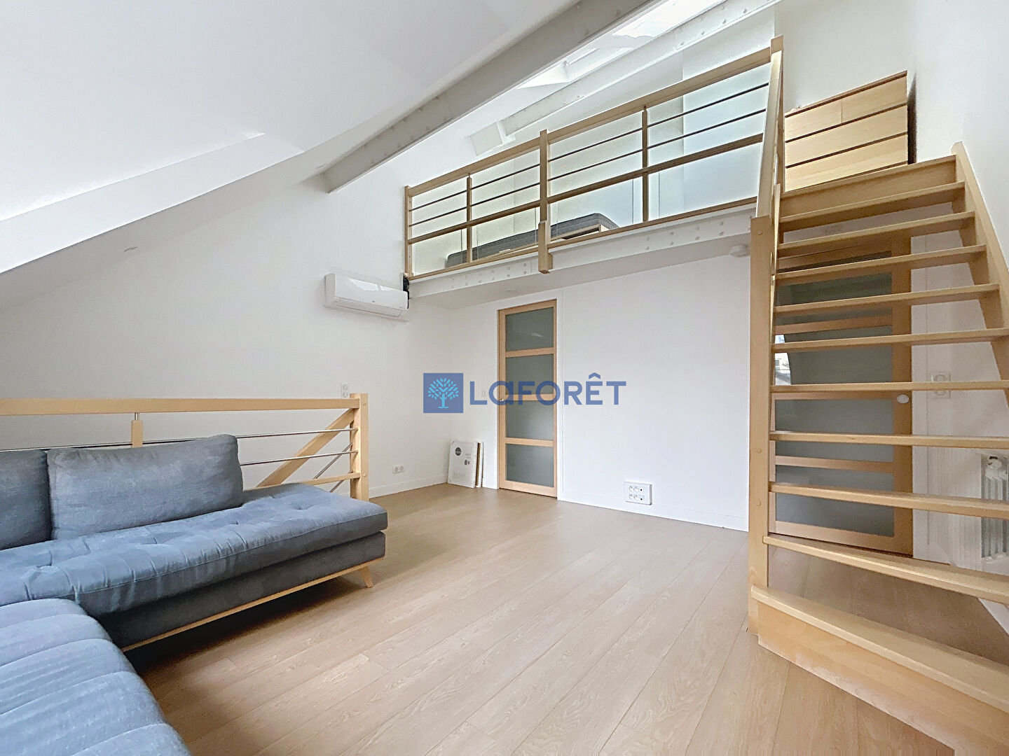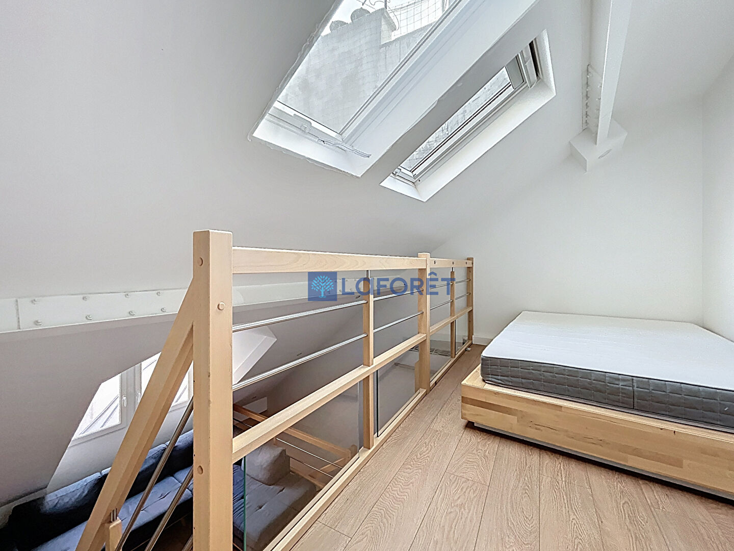 Au second niveau, un séjour avec belle hauteur sous plafond, un dressing, une deuxième salle d'eau avec WC et un espace nuit en mezzanine.