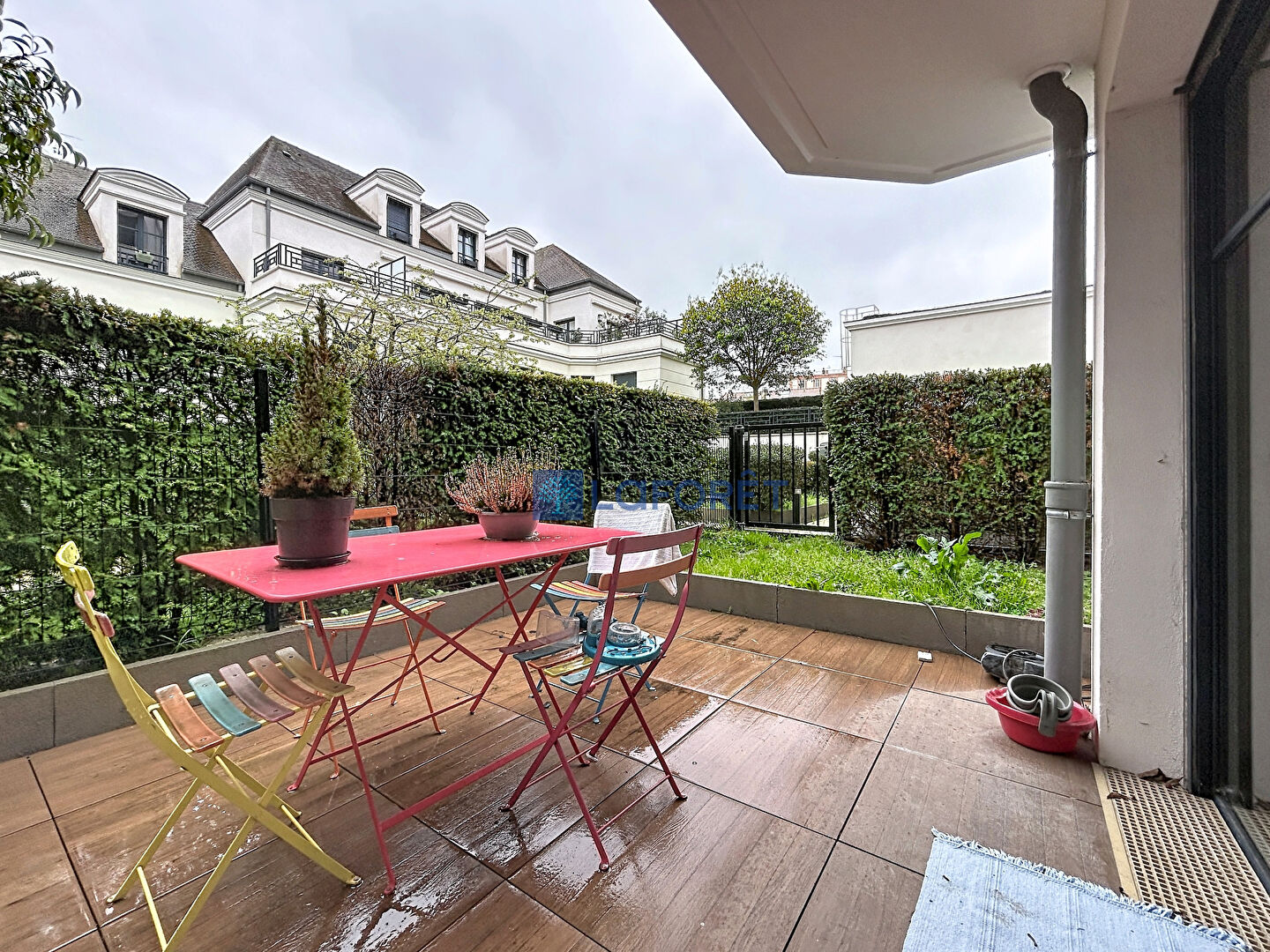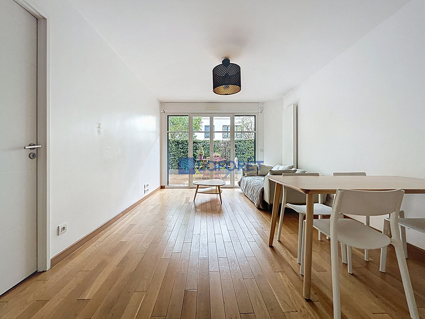 Il comprend une entrée, un séjour avec cuisine américaine équipée donnant sur jardin privatif de 26m², 2 chambres, une salle de bains et WC séparé.