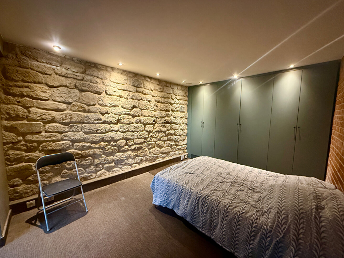 Les matériaux authentiques, tels que les murs en pierre et briques apparentes, renforcent l'esprit loft et le cachet de l'appartement.