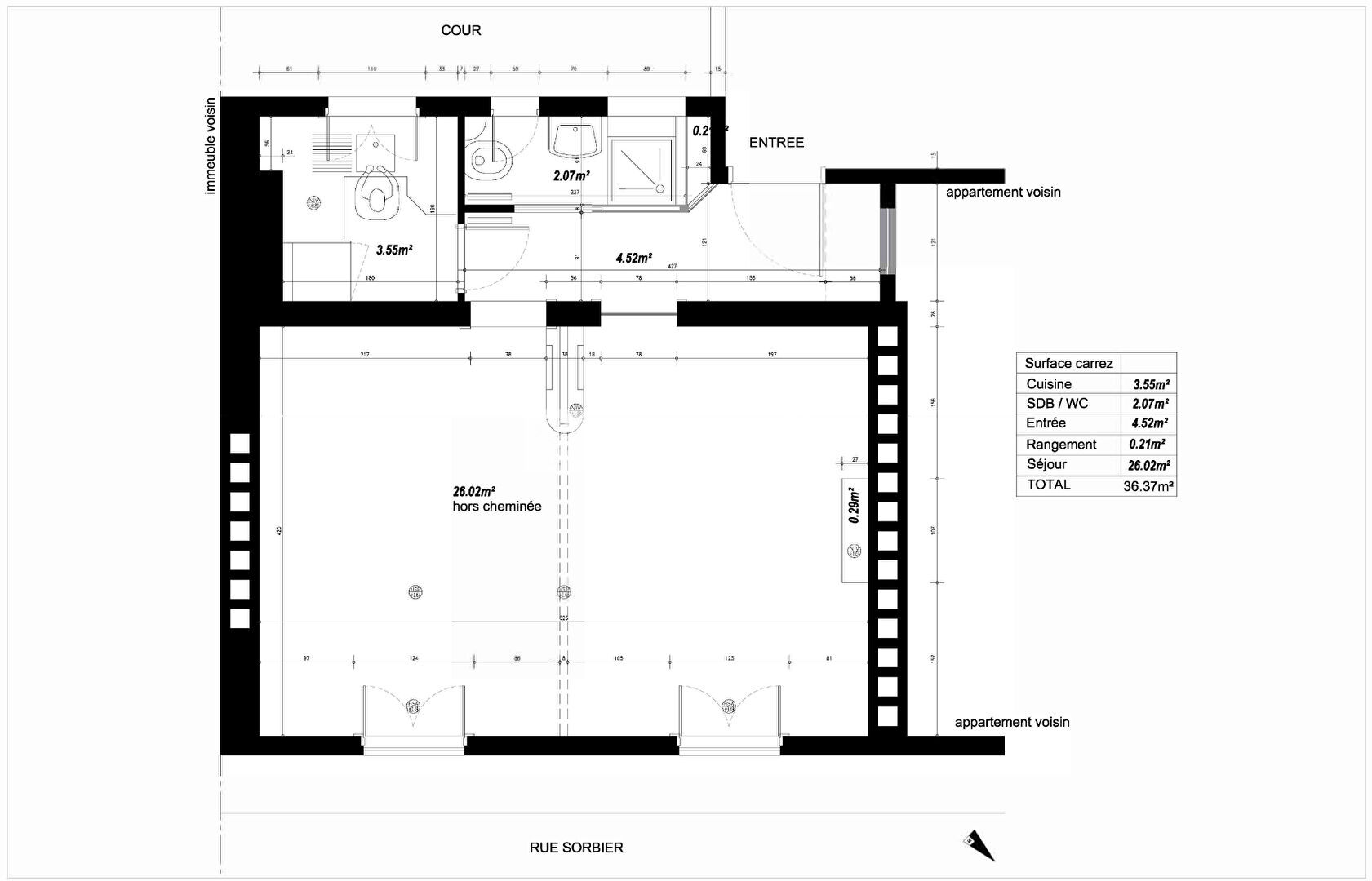 Idéalement situé rue Sorbier, à proximité de la place Martin-Nadaud et de l'avenue Gambetta, au 5e étage d'un bel immeuble ancien avec ascenseur, nous vous présentons cet appartement de type T2, actuellement configuré en studio, offrant le charme de l'ancien avec cheminée fonctionnelle dans la pièce de vie, ainsi que la possibilité de retrouver sa configuration initiale en T2 (salon et chambre), comprenant :