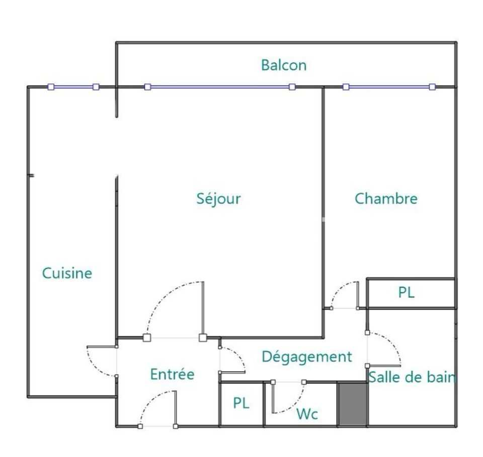 Le séjour lumineux s'ouvre sur un balcon, idéal pour profiter d'un extérieur. Il dispose également d'un dégagement permettant d'installer facilement une table de salle à manger, tout en conservant un espace salon confortable et spacieux. La cuisine, fonctionnelle, donne directement sur ce dégagement du séjour, facilitant la circulation et l'organisation de l'espace.