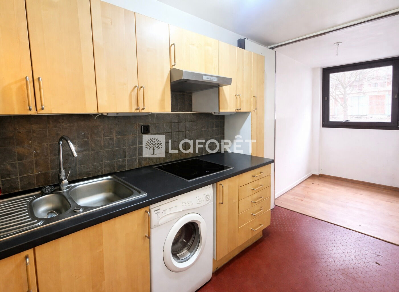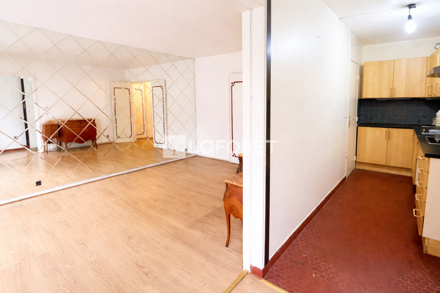 Séjour lumineux avec balcon, cuisine fonctionnelle ouverte sur un espace repas, chambre avec placard et balcon, salle de bain avec baignoire et bidet, toilette séparée.