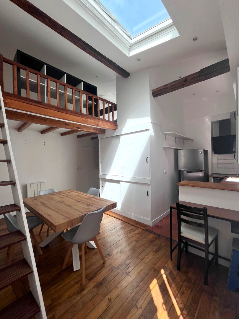 Charmant appartement atypique de deux pièces principales au premier et dernier étage de 36 m² carrez et 55 m² au sol, composé d'une entrée, une salle d'eau avec wc, salle à manger donnant sur cuisine ouverte aménagée et équipée et sur un espace nuit en mezzanine, un séjour donnant sur un nouvel espace nuit en mezzanine. Exposé sud-est ce logement est très lumineux et au calme sur cour où vous avez la possibilité de mettre une petite table et deux chaises, à proximité immédiate du métro Avron ou Alexandre Dumas et sept minutes à pied de la place de la Nation, nombreux commerces.